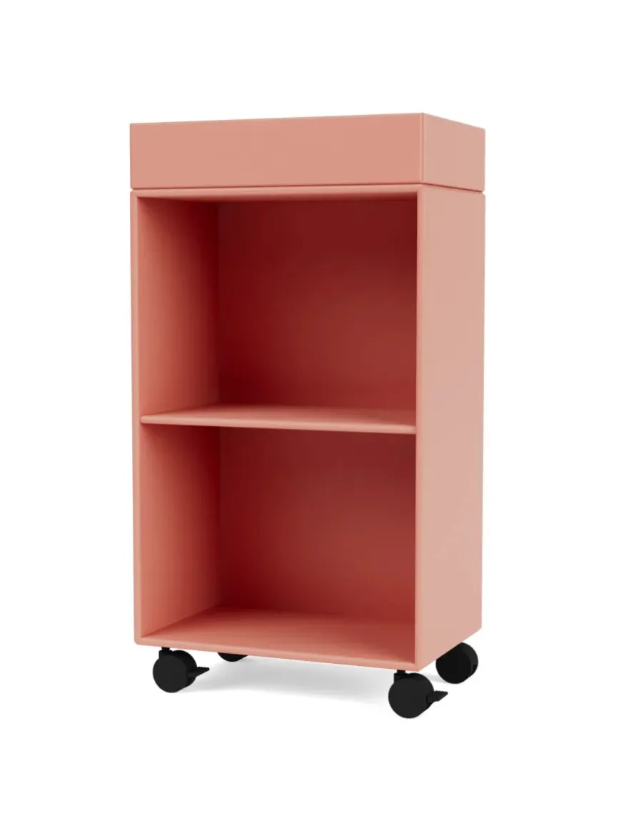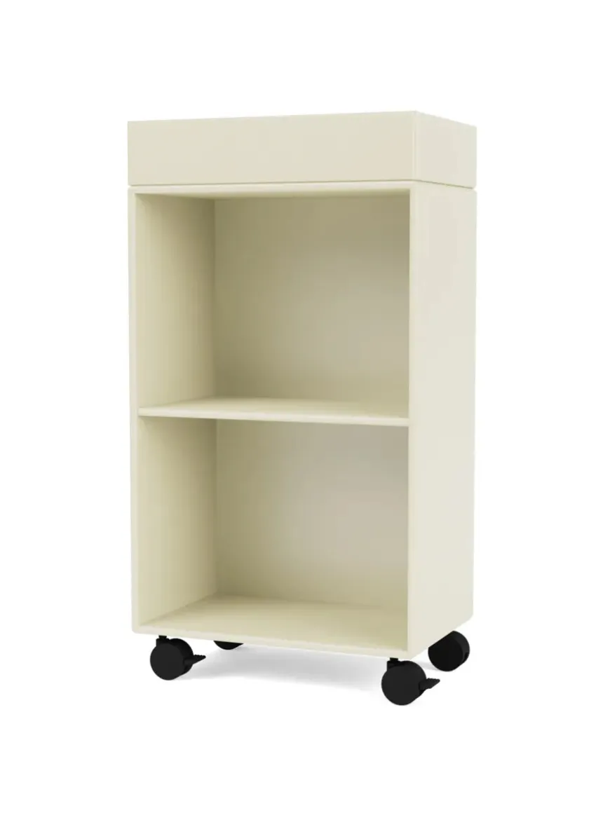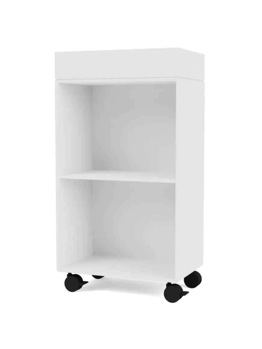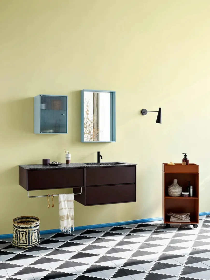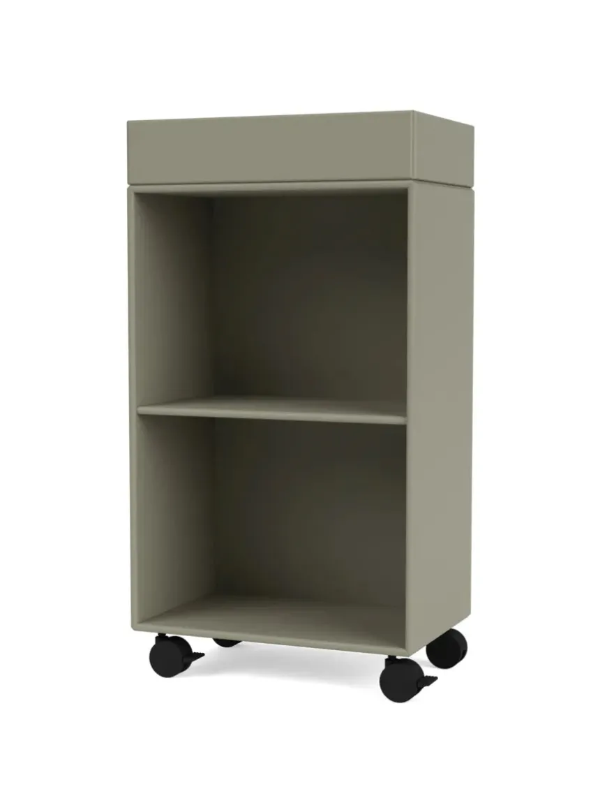 Preppy er en badeværelsesvogn og mobil opbevaring på hjul lavet af 12 mm vandafvisende MDF. Modulet har to rum og en bakke på toppen. Preppy er ideel til opbevaring af håndklæder, wellness- og skønhedsartikler – eller styling såsom planter. Preppy vognen er certificeret med det danske indeklimamærke og det officielle EU Ecolabel, hvilket gør den til et sikkert valg for dig, dine omgivelser og miljøet. Den kommer i Montanas poetiske farvepalet med 40 nuancer. Selections i vandafvisende MDF er uden pilothuller. Badeværelsesmodulerne er godkendt til badeværelser, men må ikke placeres nogen steder, hvor der opstår direkte kontakt med vand.