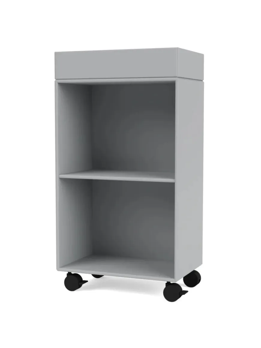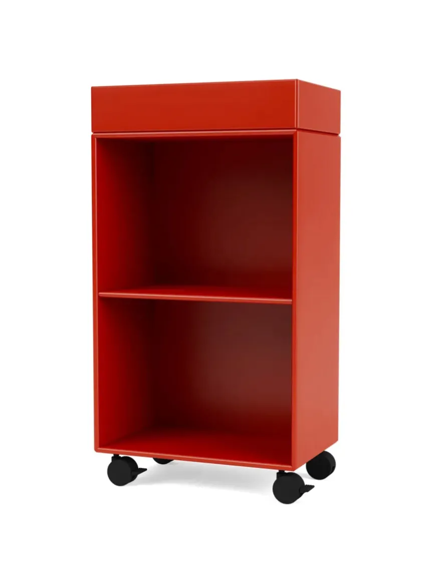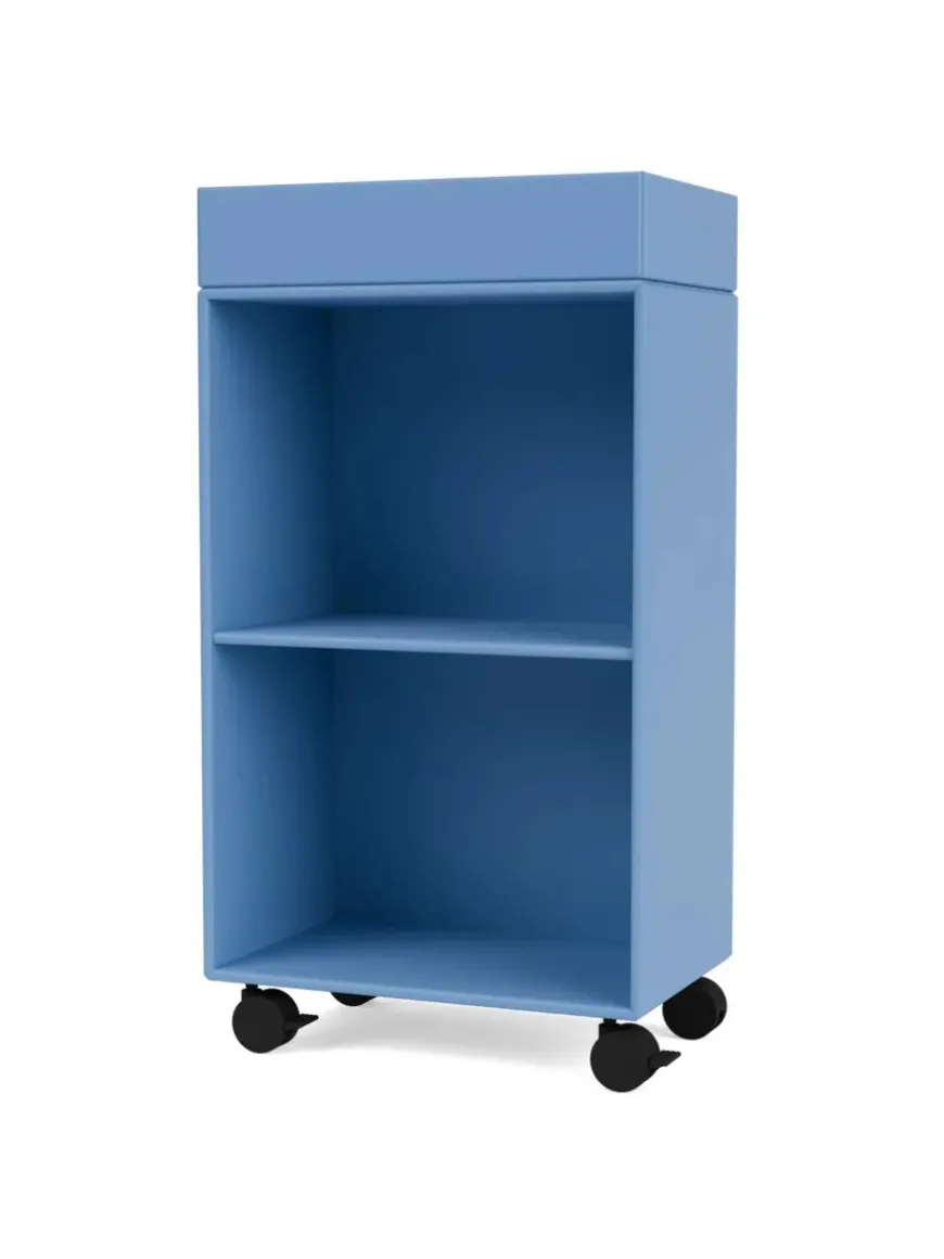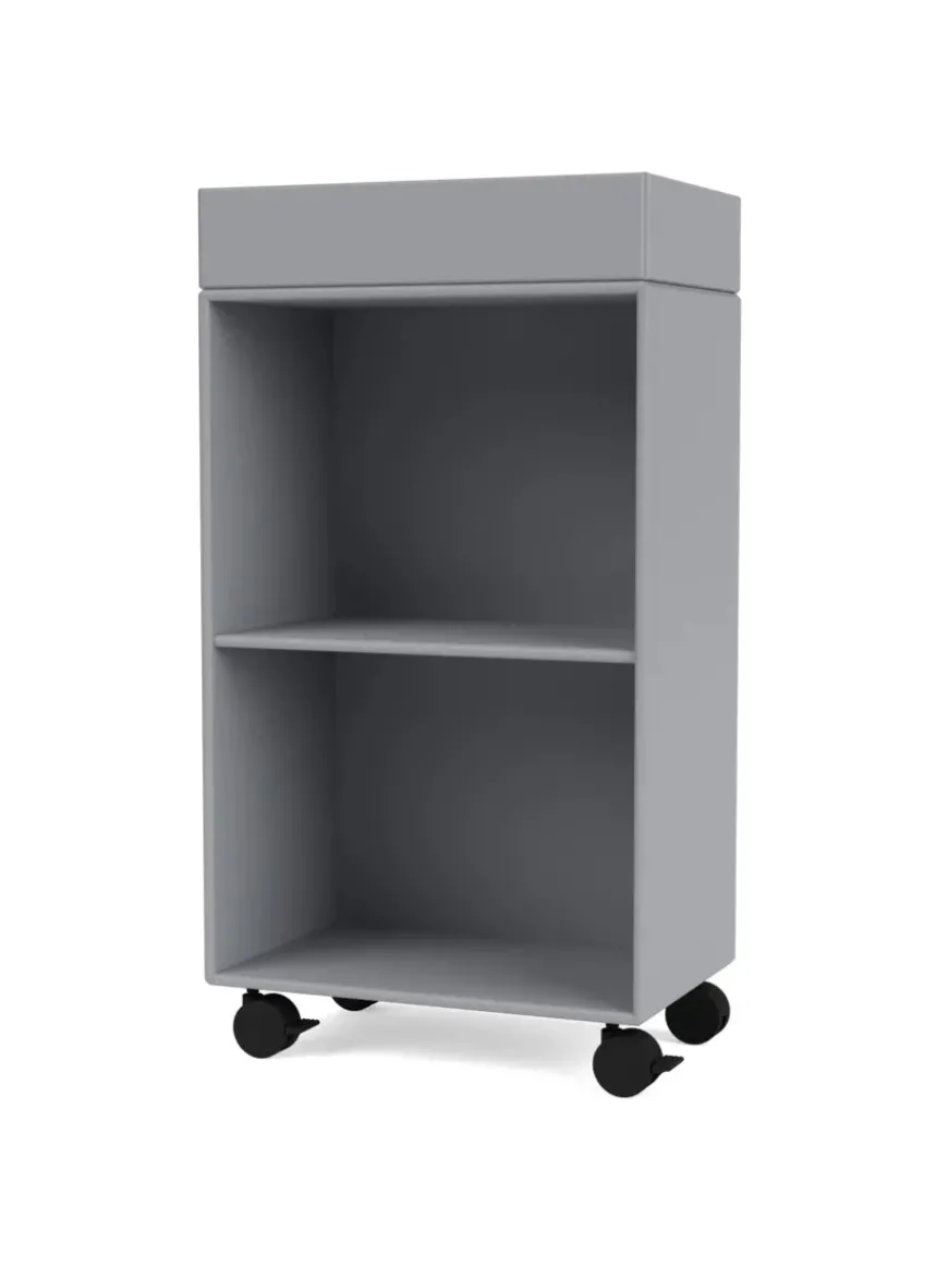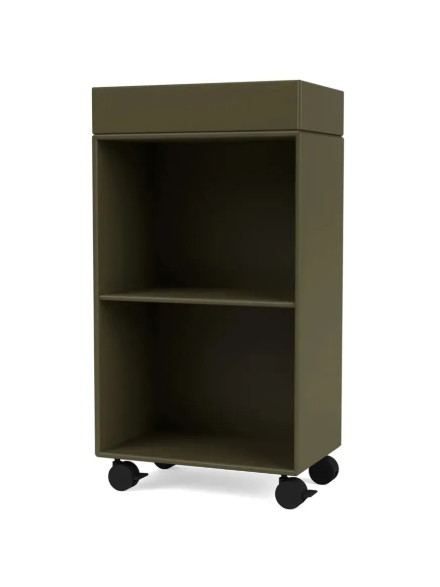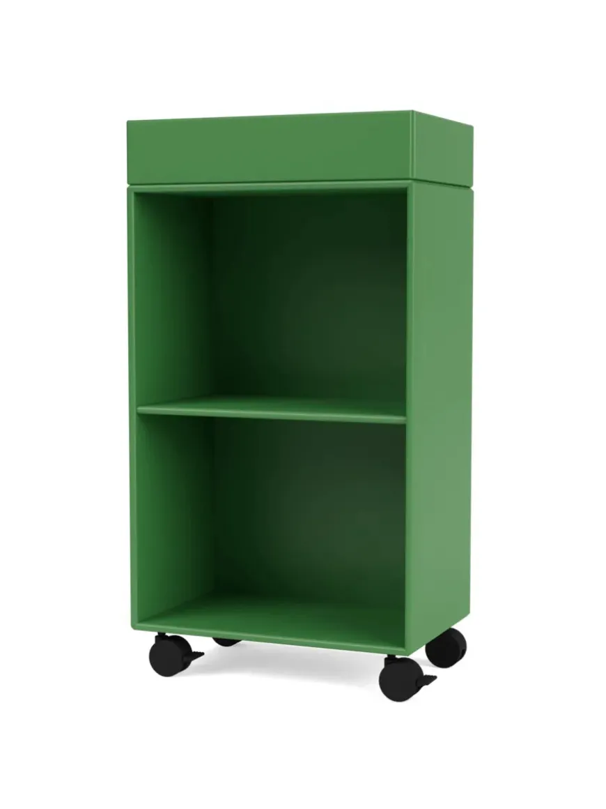 Preppy er en badeværelsesvogn og mobil opbevaring på hjul lavet af 12 mm vandafvisende MDF. Modulet har to rum og en bakke på toppen. Preppy er ideel til opbevaring af håndklæder, wellness- og skønhedsartikler – eller styling såsom planter. Preppy vognen er certificeret med det danske indeklimamærke og det officielle EU Ecolabel, hvilket gør den til et sikkert valg for dig, dine omgivelser og miljøet. Den kommer i Montanas poetiske farvepalet med 40 nuancer. Selections i vandafvisende MDF er uden pilothuller. Badeværelsesmodulerne er godkendt til badeværelser, men må ikke placeres nogen steder, hvor der opstår direkte kontakt med vand.