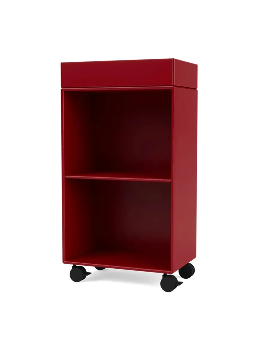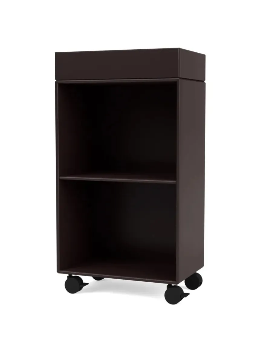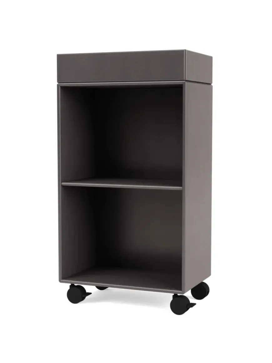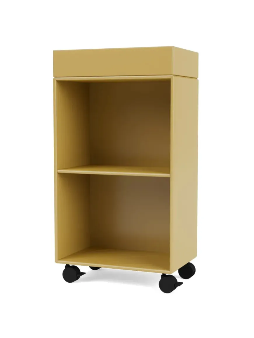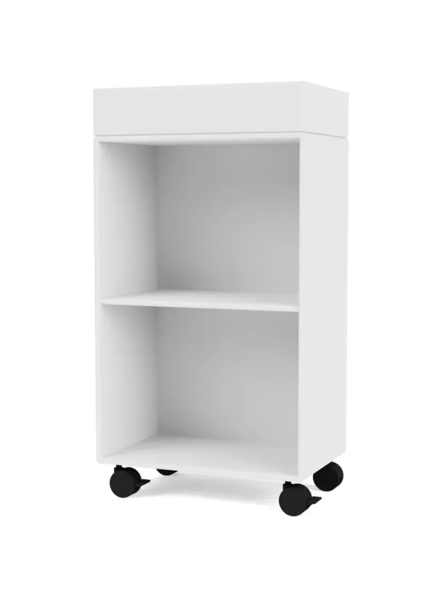 Preppy er en badeværelsesvogn og mobil opbevaring på hjul lavet af 12 mm vandafvisende MDF. Modulet har to rum og en bakke på toppen. Preppy er ideel til opbevaring af håndklæder, wellness- og skønhedsartikler – eller styling såsom planter. Preppy vognen er certificeret med det danske indeklimamærke og det officielle EU Ecolabel, hvilket gør den til et sikkert valg for dig, dine omgivelser og miljøet. Den kommer i Montanas poetiske farvepalet med 40 nuancer. Selections i vandafvisende MDF er uden pilothuller. Badeværelsesmodulerne er godkendt til badeværelser, men må ikke placeres nogen steder, hvor der opstår direkte kontakt med vand.