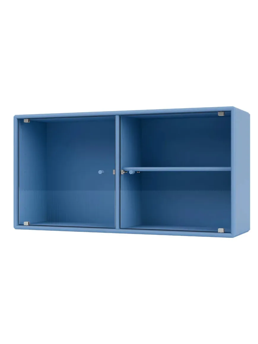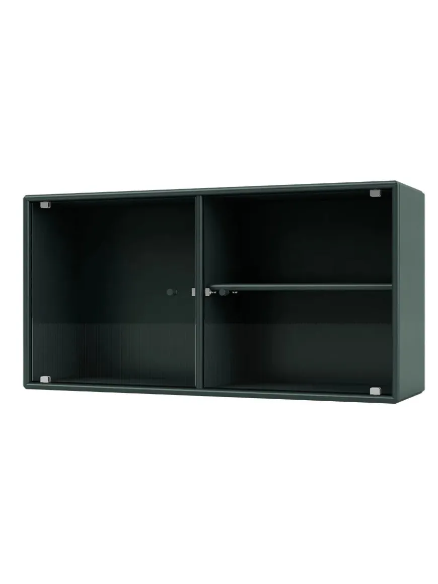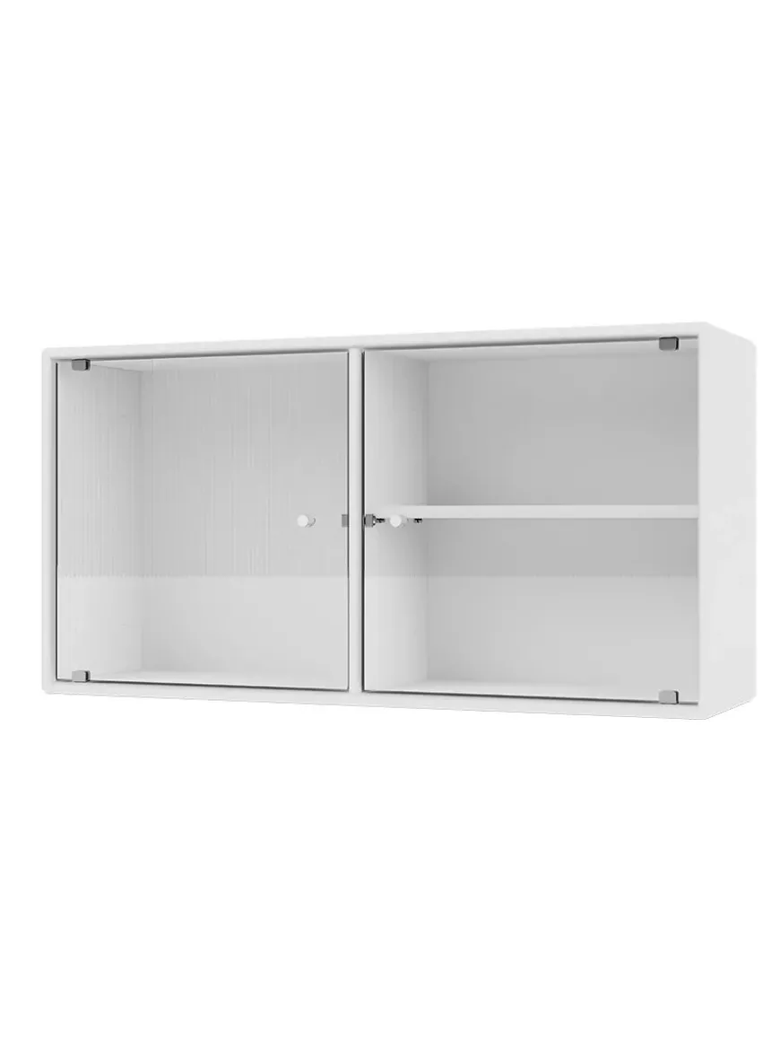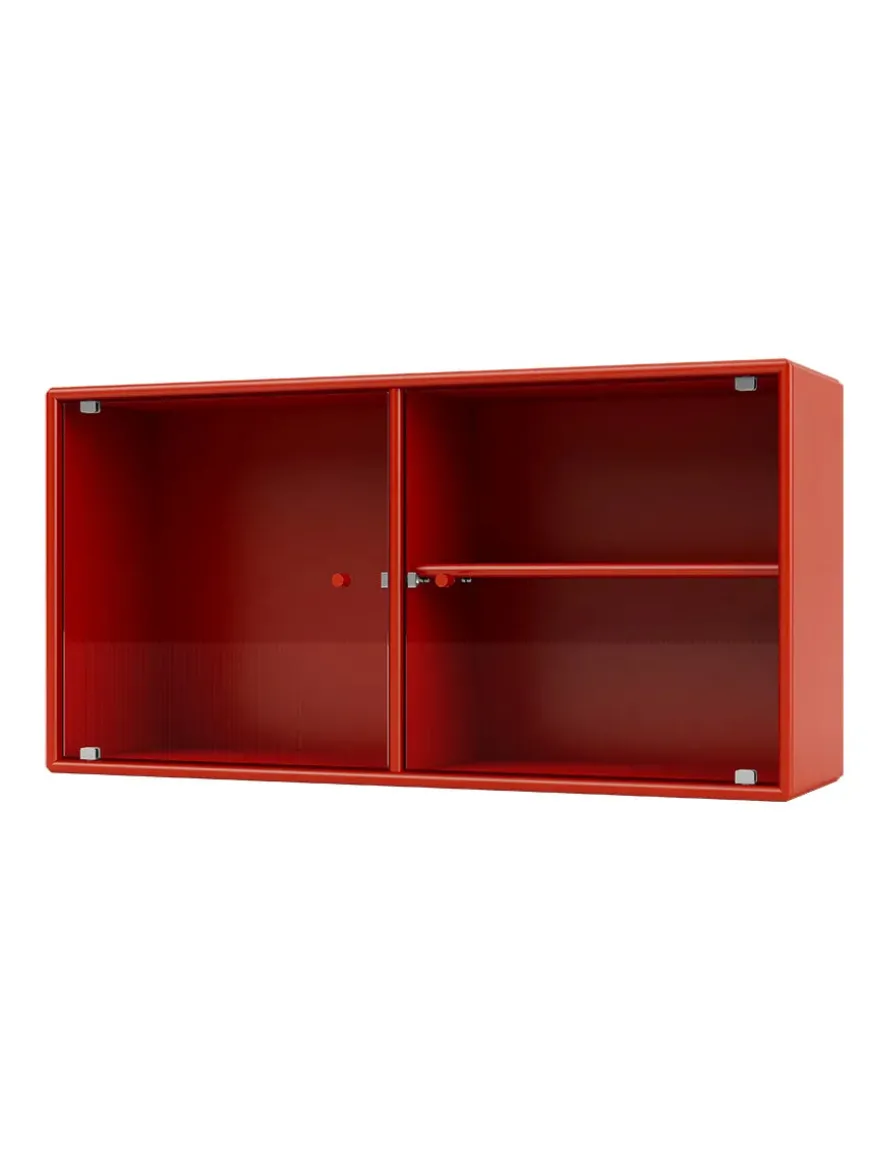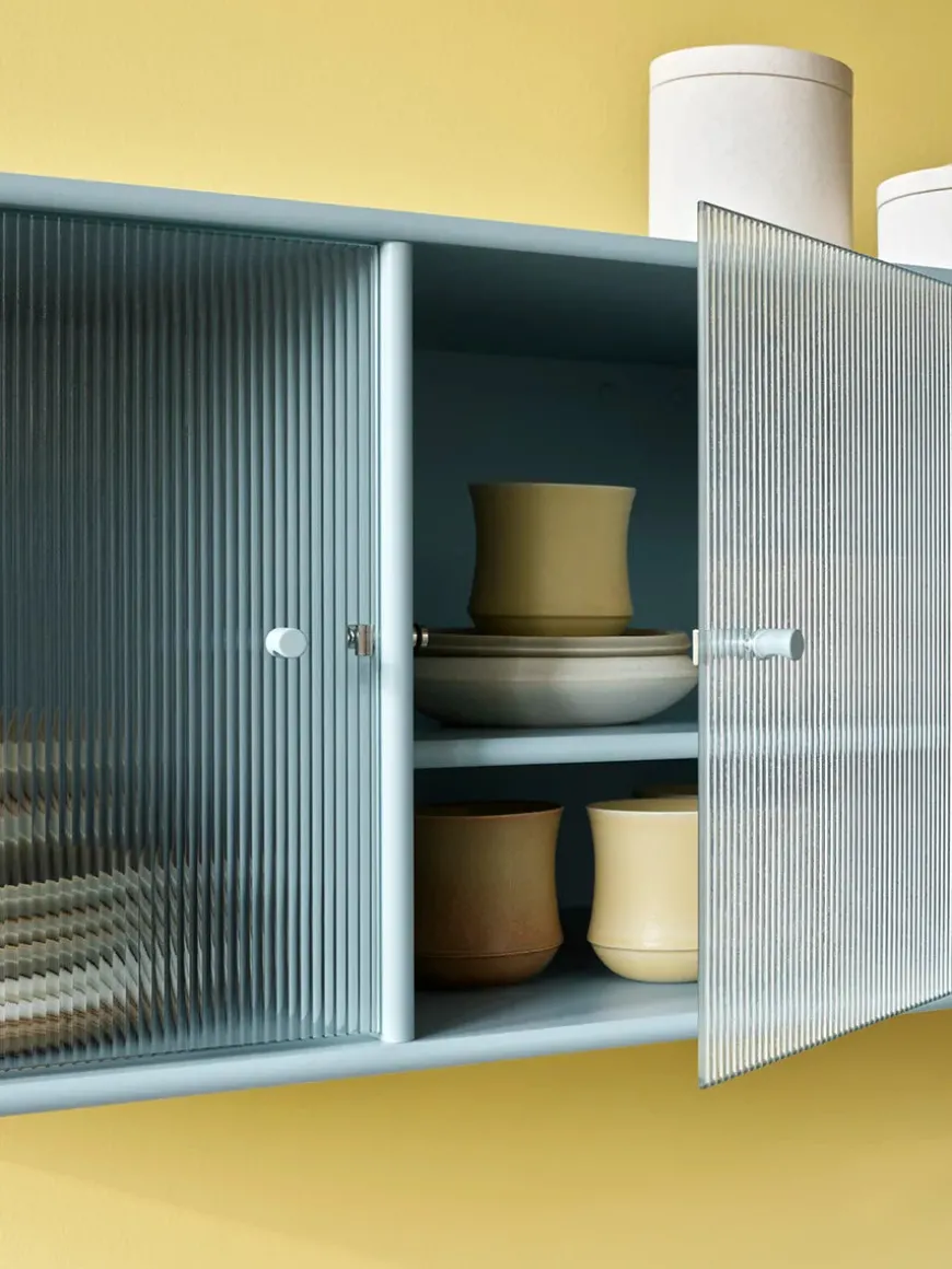 Vær opmærksom på at glaslågerne er i matteret, rillet glas Ripple I er et mindre vitrineskab, der kan rumme dine finere ejendele. Skabet har to perforerede glaslåger med lakerede greb. Ripple skabet er certificeret med det danske indeklimamærke og det officielle EU Ecolabel, hvilket gør det til et sikkert valg for dig, dine omgivelser og miljøet. Skabet kommer i Montanas poetiske farvepalet med 41 nuancer, som er udarbejdet af danske Margrethe Odgaard.