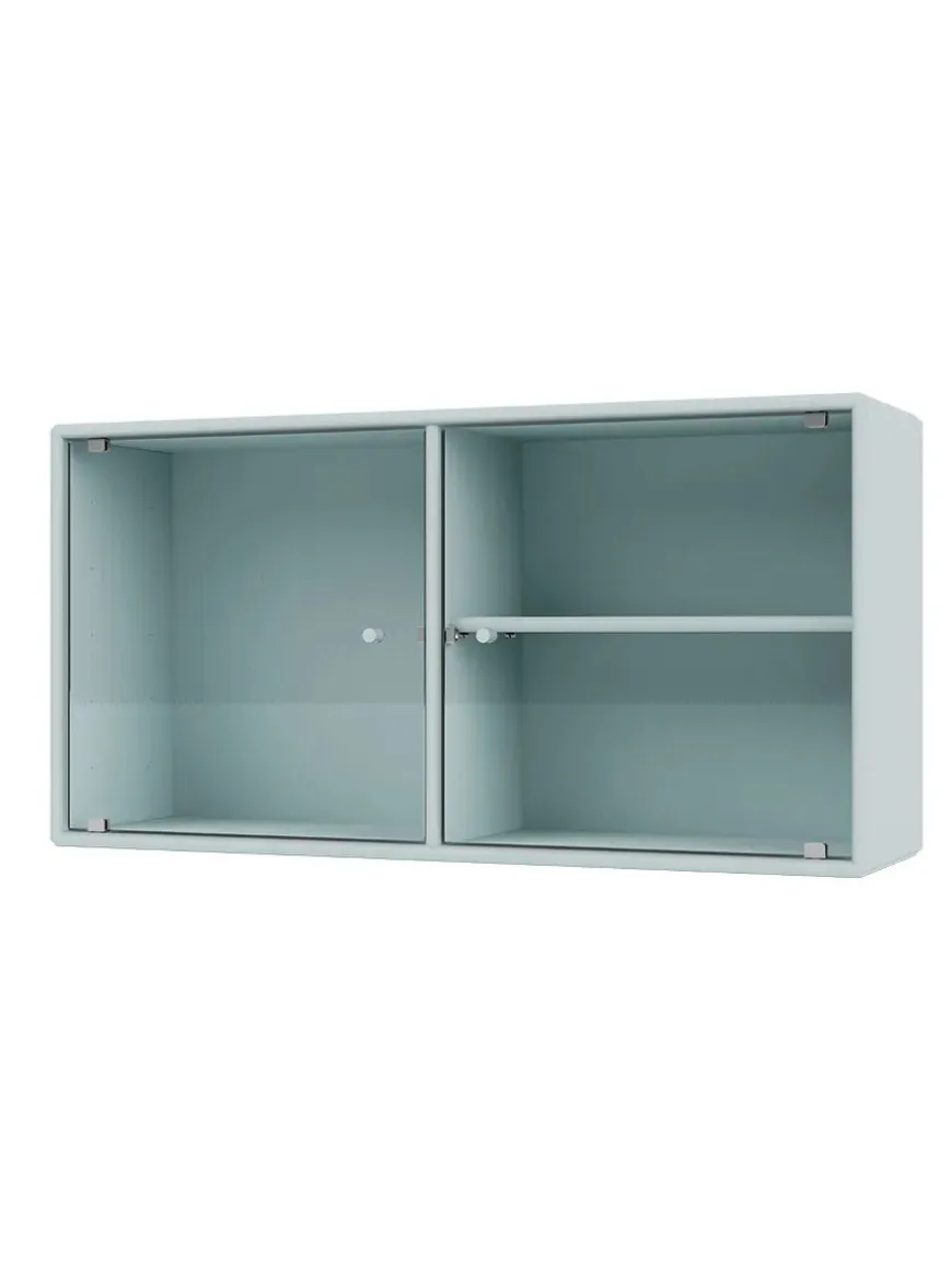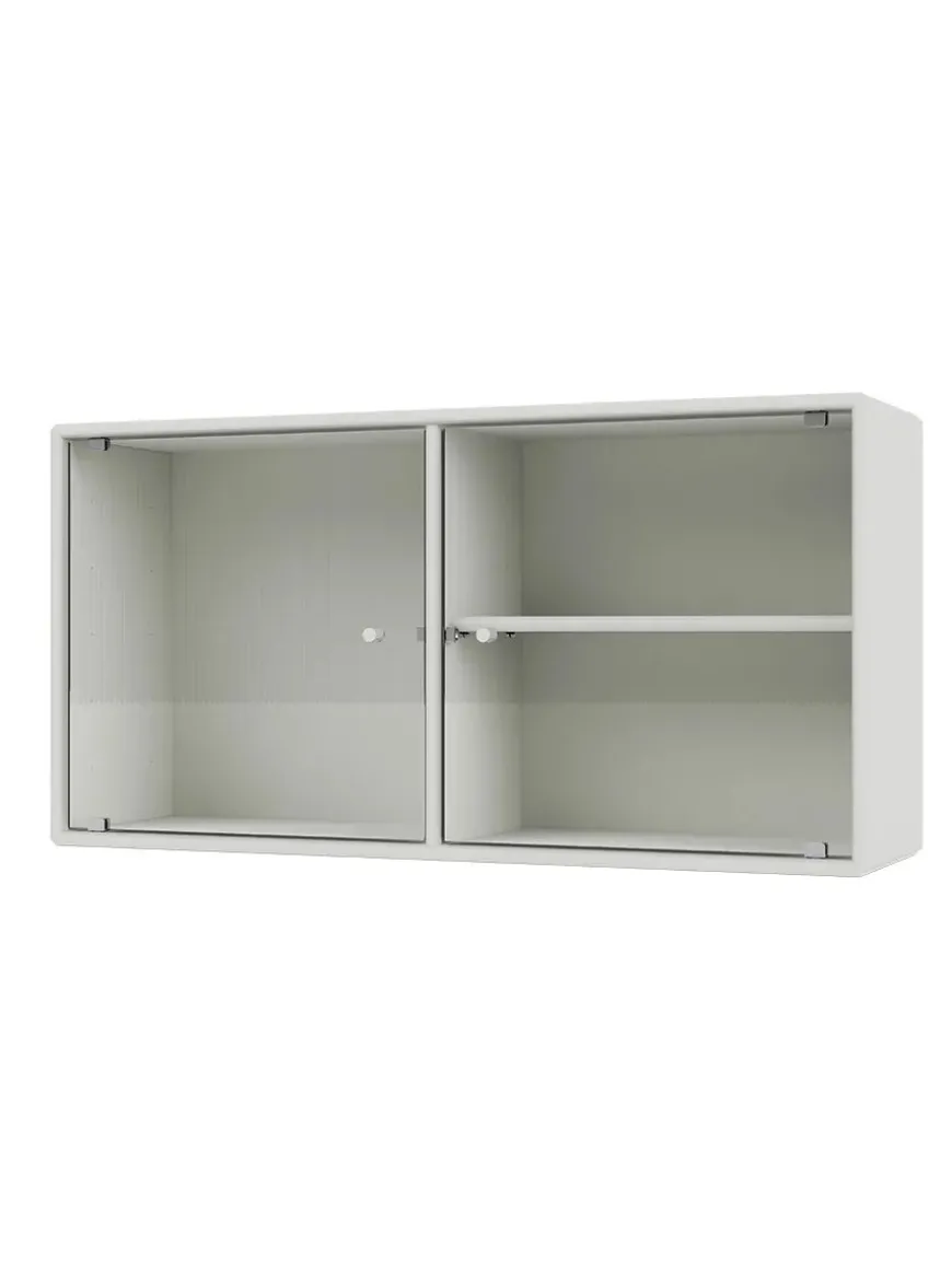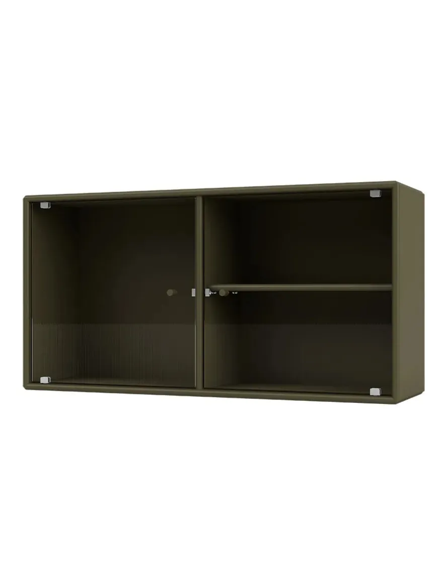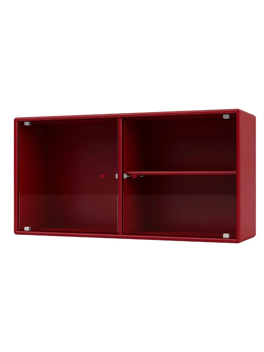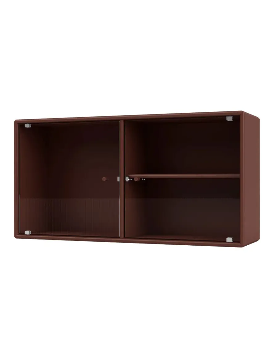 Vær opmærksom på at glaslågerne er i matteret, rillet glas Ripple I er et mindre vitrineskab, der kan rumme dine finere ejendele. Skabet har to perforerede glaslåger med lakerede greb. Ripple skabet er certificeret med det danske indeklimamærke og det officielle EU Ecolabel, hvilket gør det til et sikkert valg for dig, dine omgivelser og miljøet. Skabet kommer i Montanas poetiske farvepalet med 41 nuancer, som er udarbejdet af danske Margrethe Odgaard.