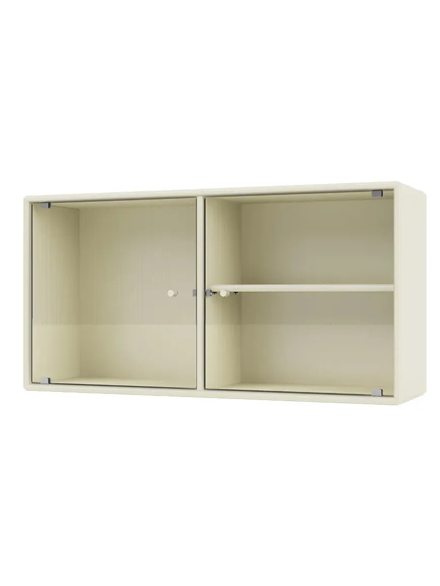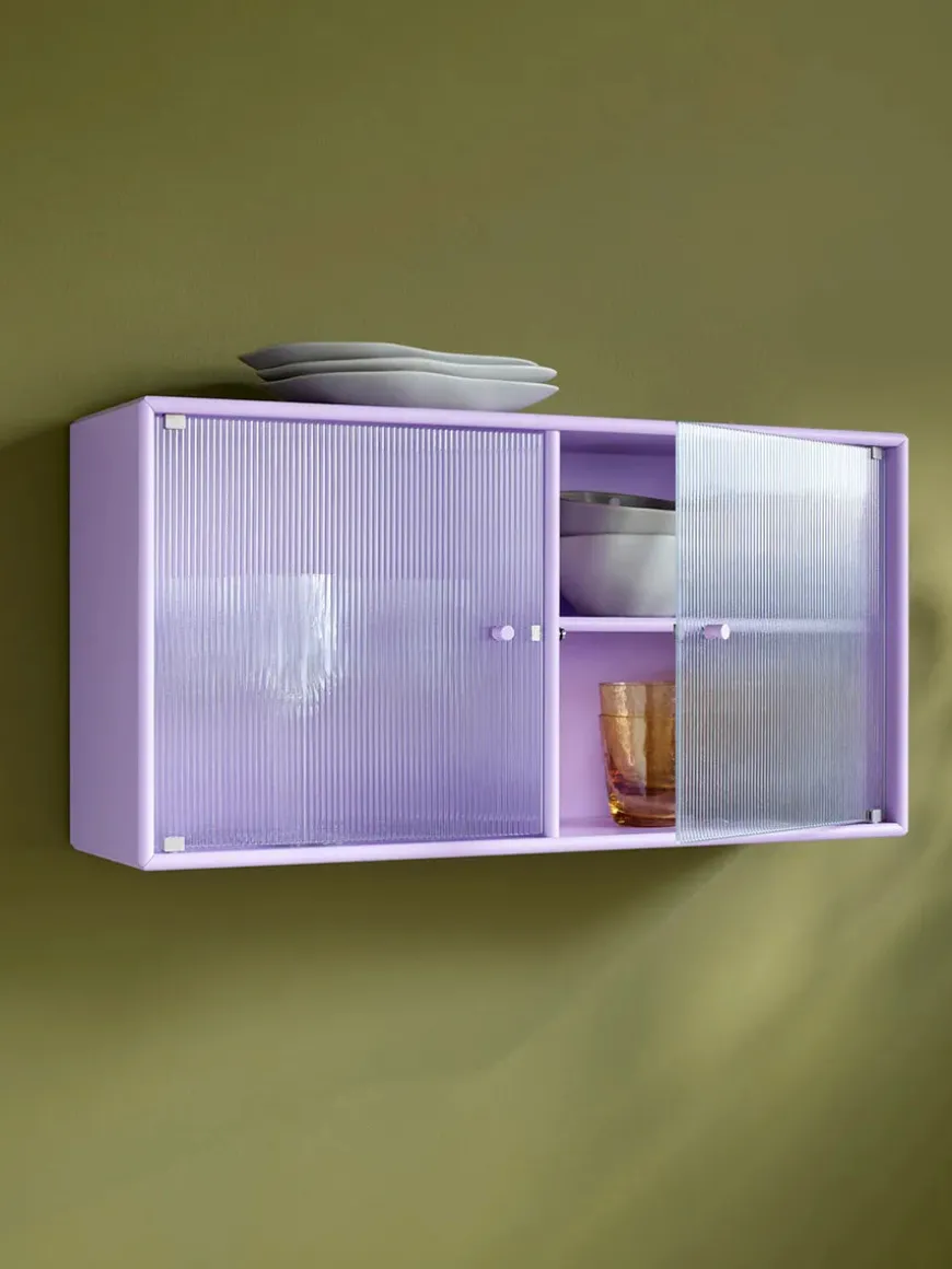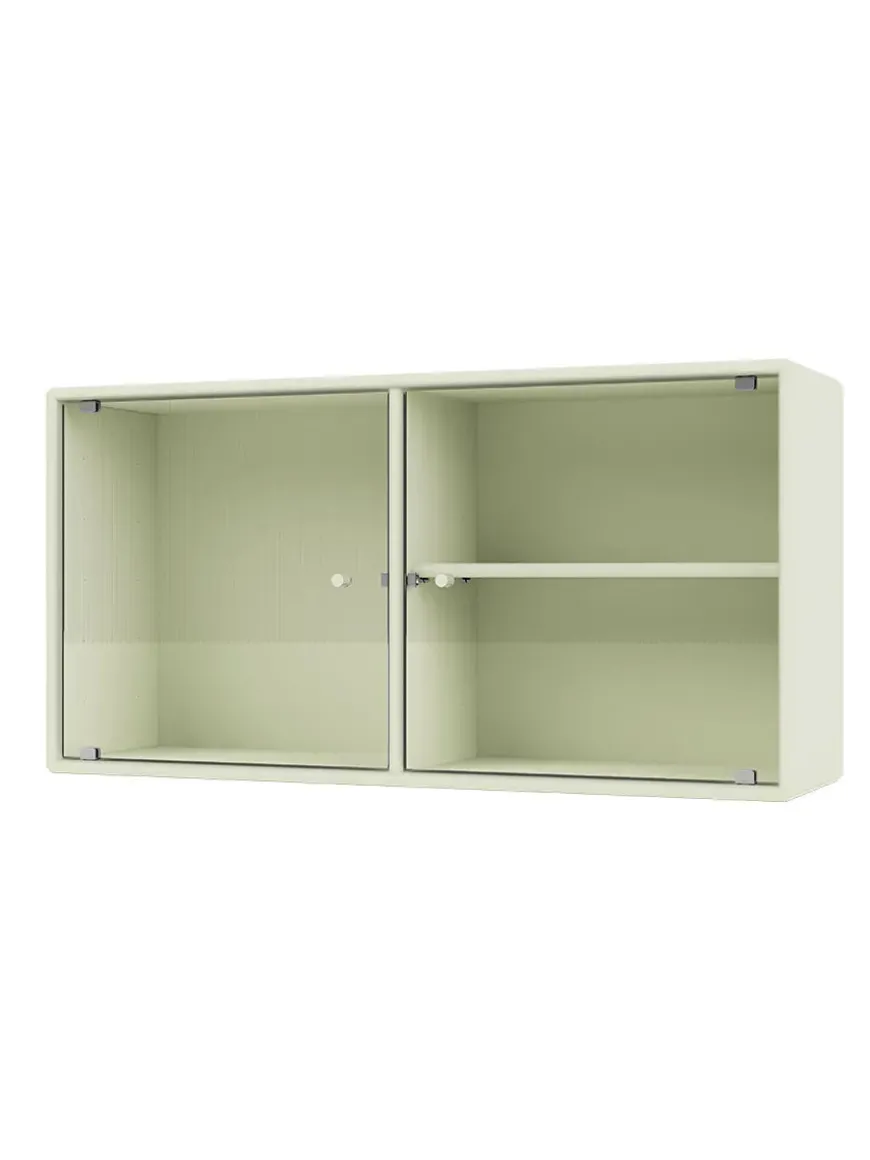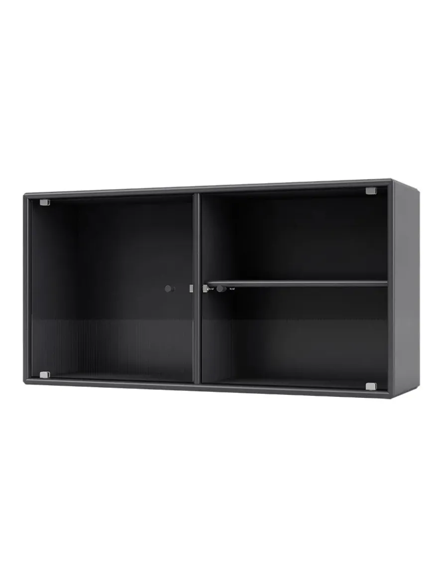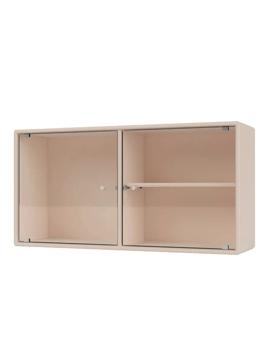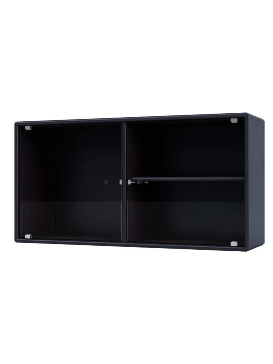 Vær opmærksom på at glaslågerne er i matteret, rillet glas Ripple I er et mindre vitrineskab, der kan rumme dine finere ejendele. Skabet har to perforerede glaslåger med lakerede greb. Ripple skabet er certificeret med det danske indeklimamærke og det officielle EU Ecolabel, hvilket gør det til et sikkert valg for dig, dine omgivelser og miljøet. Skabet kommer i Montanas poetiske farvepalet med 41 nuancer, som er udarbejdet af danske Margrethe Odgaard.