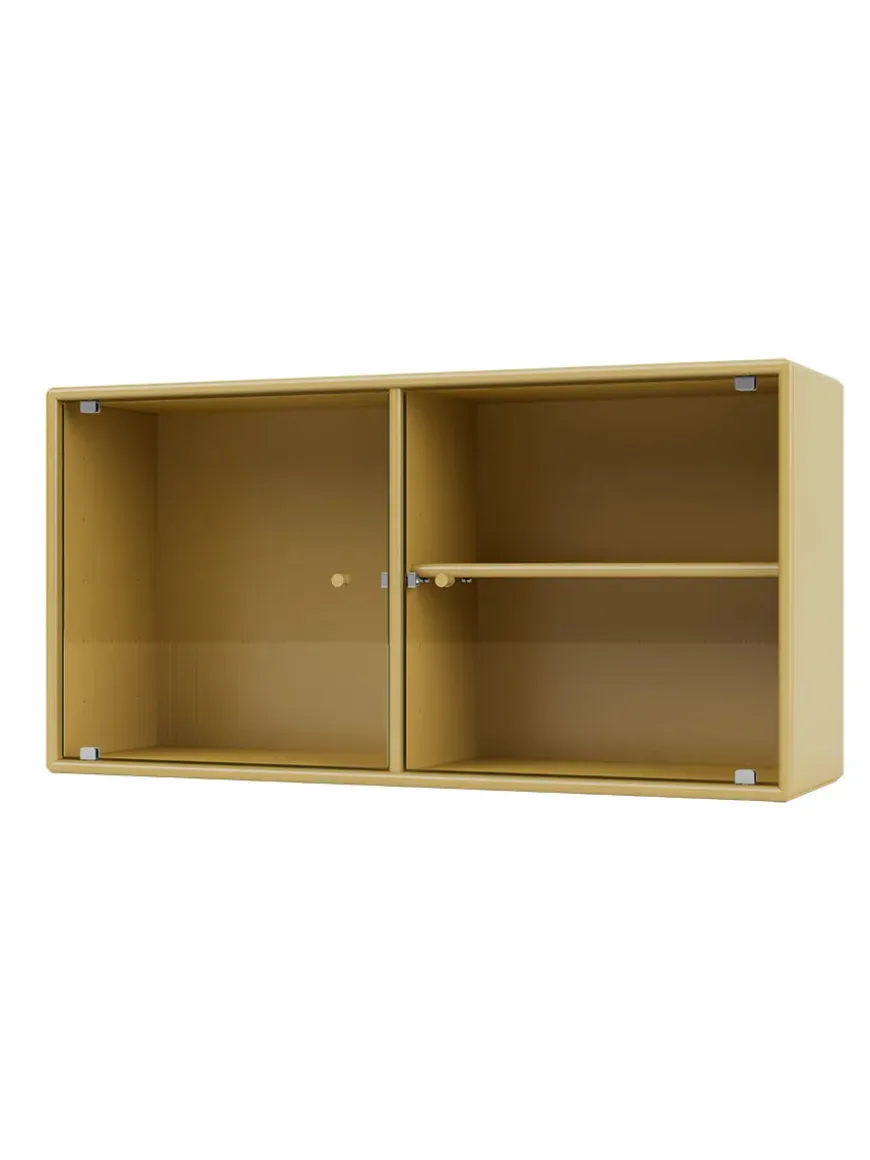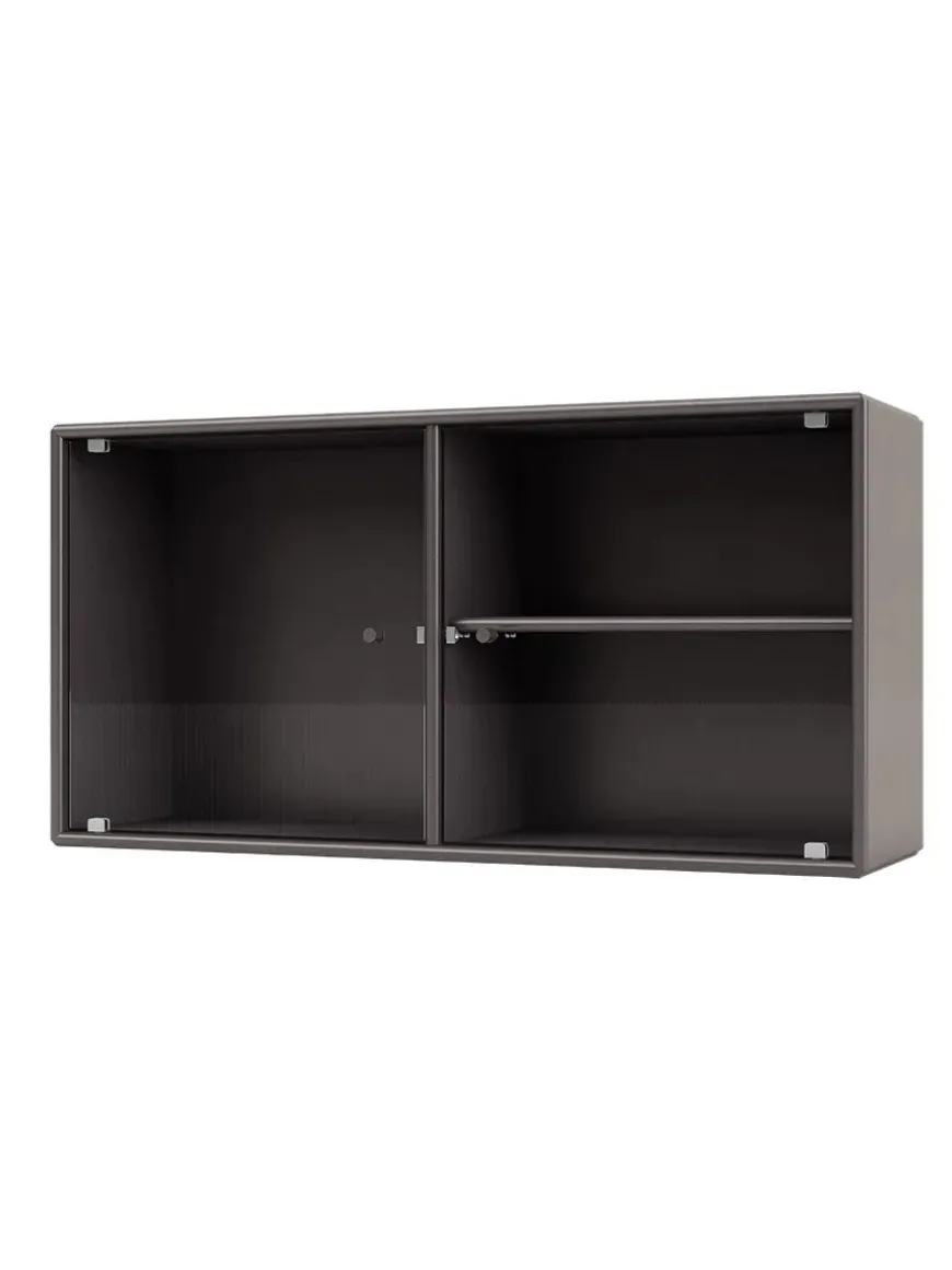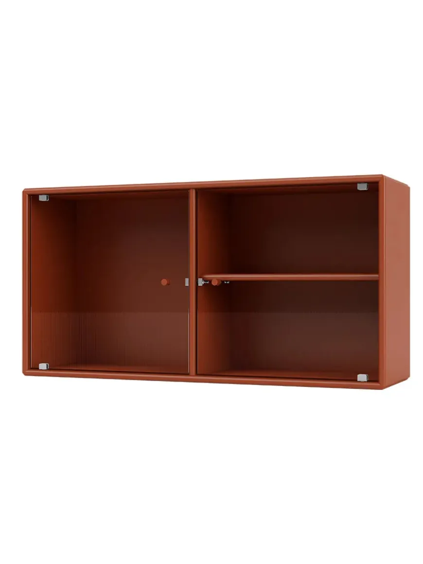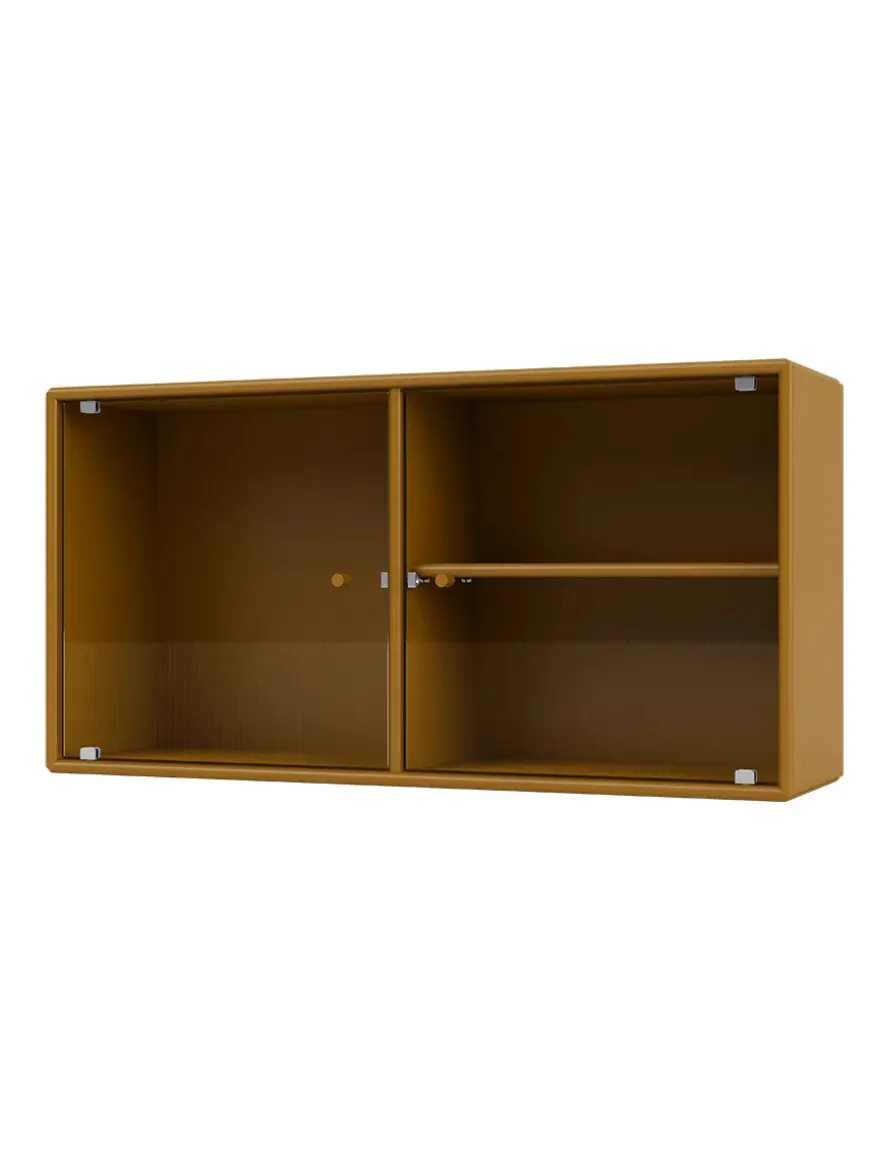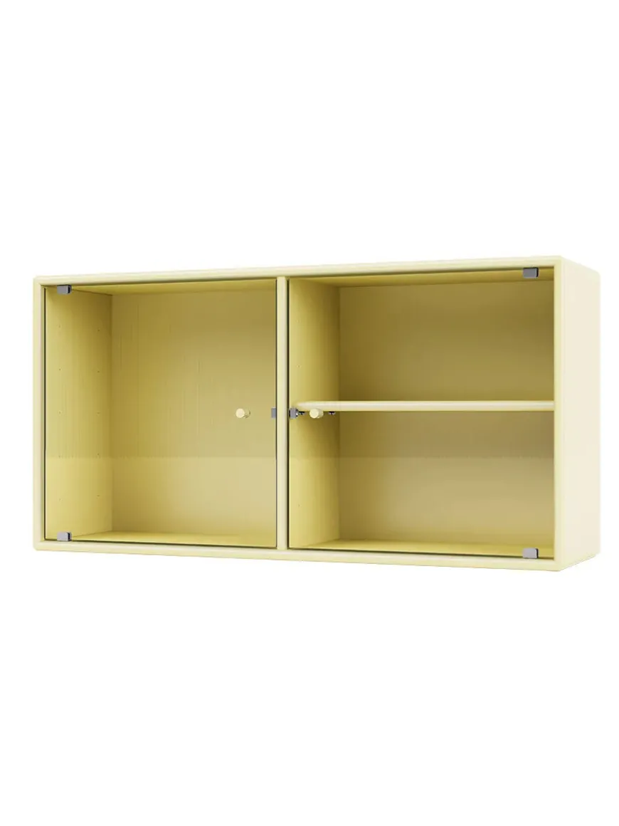 Vær opmærksom på at glaslågerne er i matteret, rillet glas Ripple I er et mindre vitrineskab, der kan rumme dine finere ejendele. Skabet har to perforerede glaslåger med lakerede greb. Ripple skabet er certificeret med det danske indeklimamærke og det officielle EU Ecolabel, hvilket gør det til et sikkert valg for dig, dine omgivelser og miljøet. Skabet kommer i Montanas poetiske farvepalet med 41 nuancer, som er udarbejdet af danske Margrethe Odgaard.