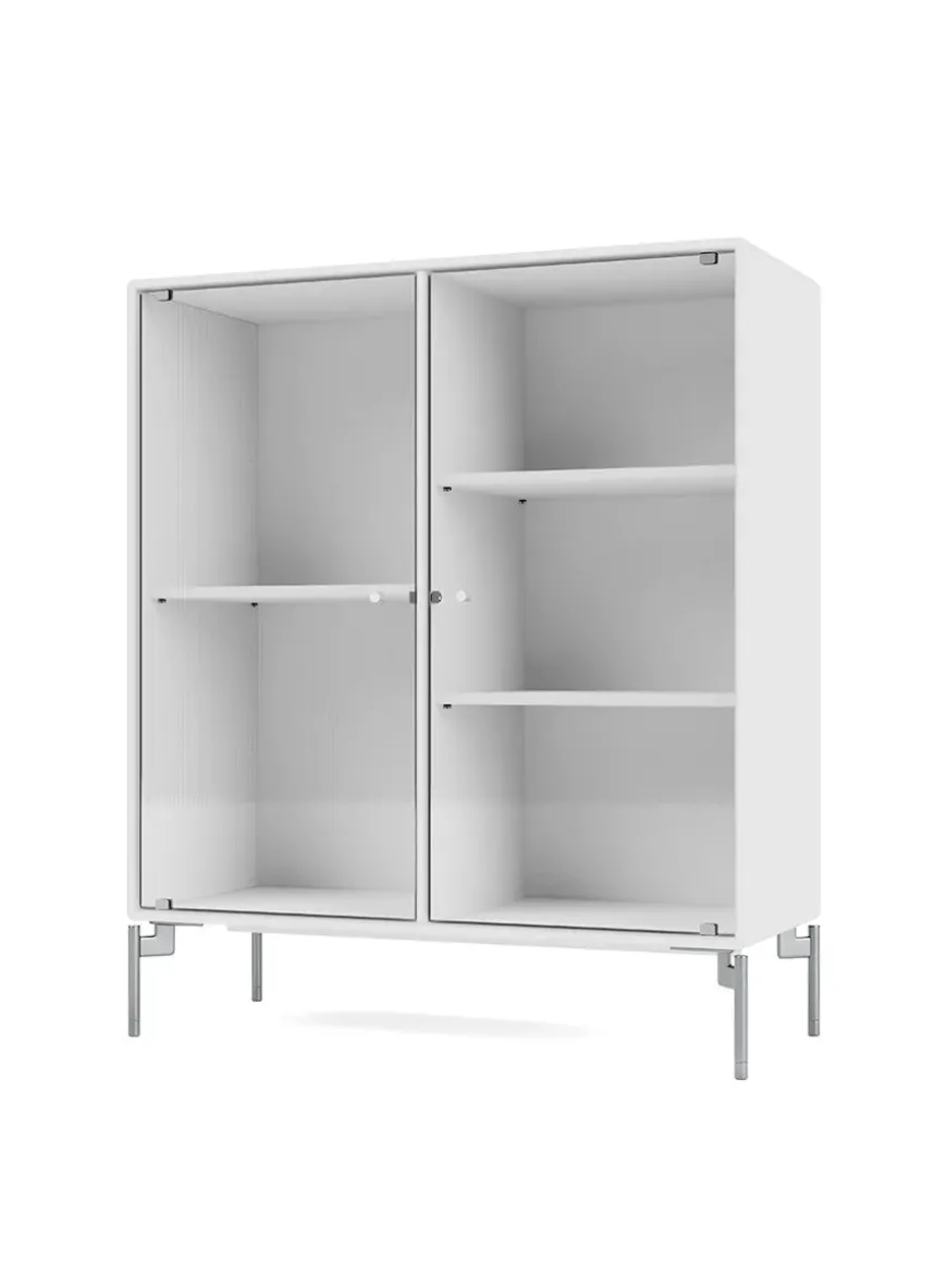 Vær opmærksom på at glaslågerne er i matteret, rillet glas Ripple II er et vitrineskab, der kan rumme dine finere ejendele, som du ikke nødvendigvis ønsker at gemme væk. Skabet har en perforeret glaslåge med lakerede greb. Ripple II skabet er certificeret med det danske indeklimamærke og det officielle EU Ecolabel, hvilket gør det til et sikkert valg for dig, dine omgivelser og miljøet. Skabet kommer i Montanas poetiske farvepalet med 41 nuancer, som er udarbejdet af danske Margrethe Odgaard.