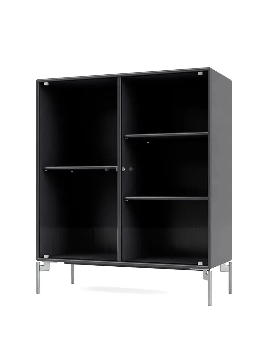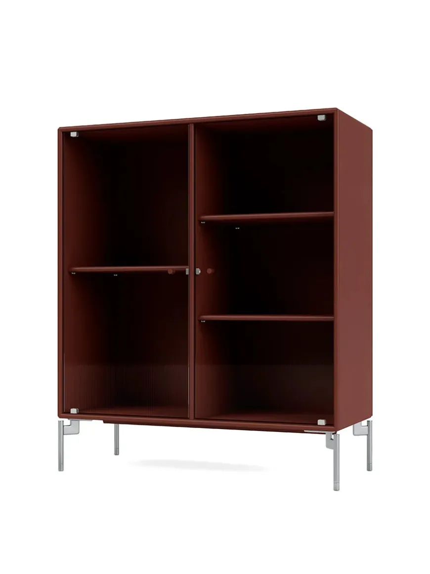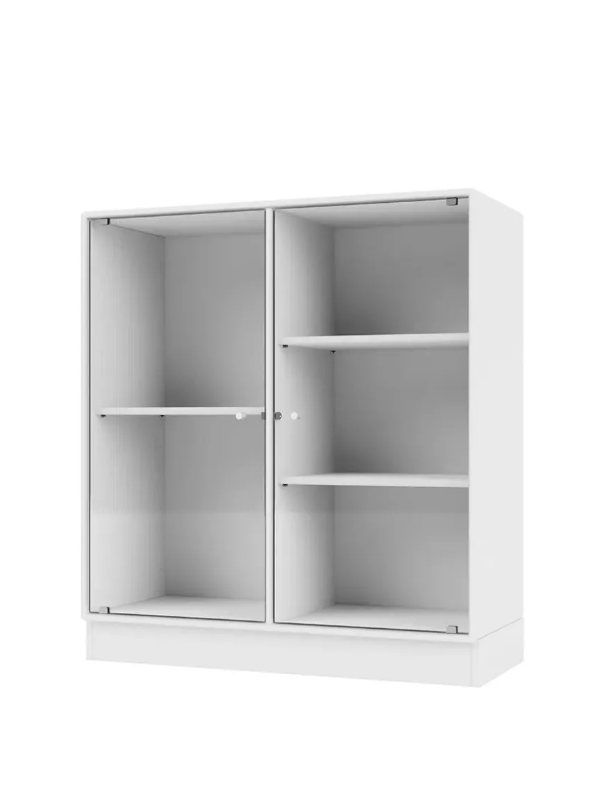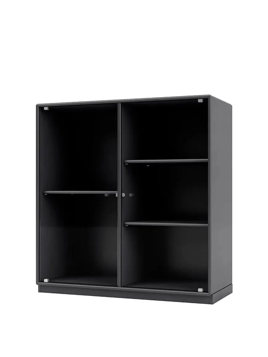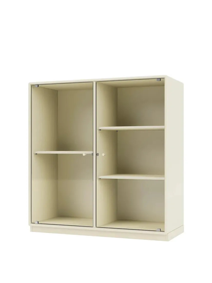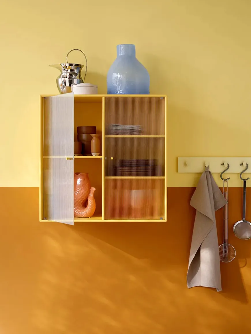 Vær opmærksom på at glaslågerne er i matteret, rillet glas Ripple II er et vitrineskab, der kan rumme dine finere ejendele, som du ikke nødvendigvis ønsker at gemme væk. Skabet har en perforeret glaslåge med lakerede greb. Ripple II skabet er certificeret med det danske indeklimamærke og det officielle EU Ecolabel, hvilket gør det til et sikkert valg for dig, dine omgivelser og miljøet. Skabet kommer i Montanas poetiske farvepalet med 41 nuancer, som er udarbejdet af danske Margrethe Odgaard.