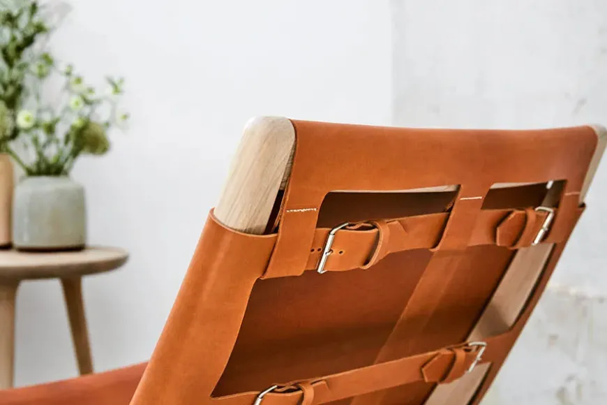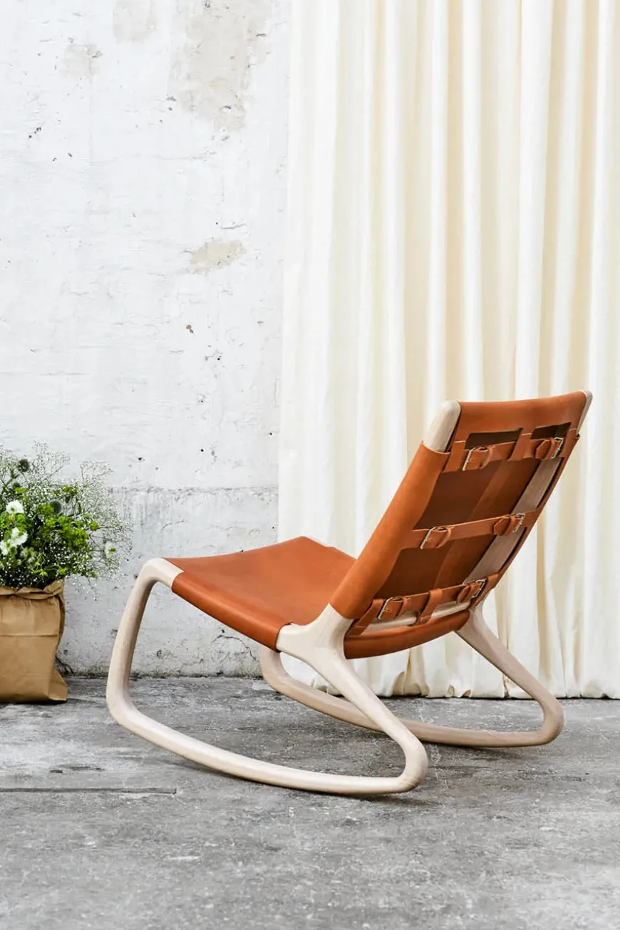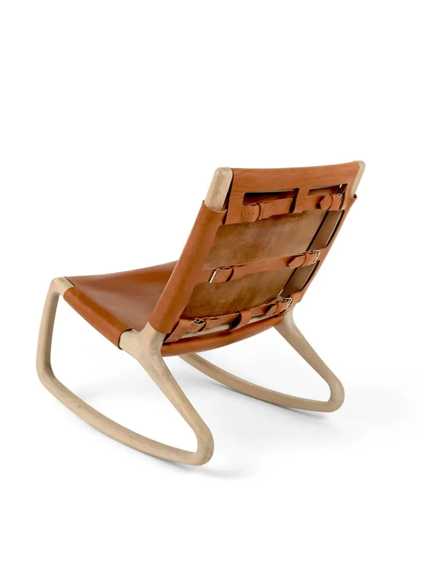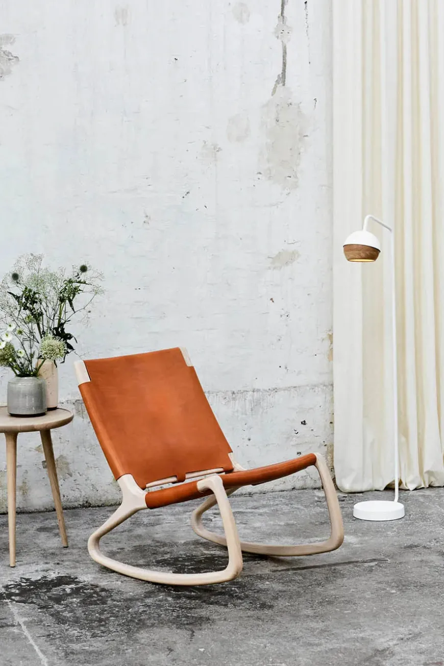 Rocker gyngestol, grå eg med mustang farvet læder fra Mater
