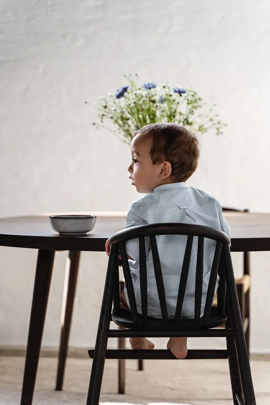 Gør måltider til en fornøjelse og skab smukke minder ved bordet for barnet sammen med resten af familien med Saga højstolen. Saga højstol kommer i tre varianter. Højstolen er her i egetræ med røget bejdse. Det mørke egetræ giver stolen et elegant look.