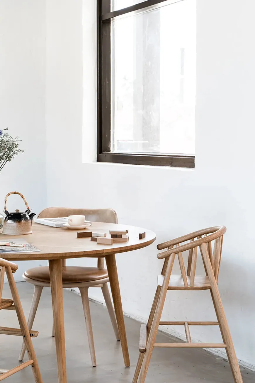Saga højstolen fra Oaklings blev designet af Nina Bruun i 2021. Højstolen vil med sit tidløse og enkle udtryk smukt passe ind sammen med resten af hjemmets indretning. Den elegante højstol er en ny klassiker i hjemmet med små børn.
