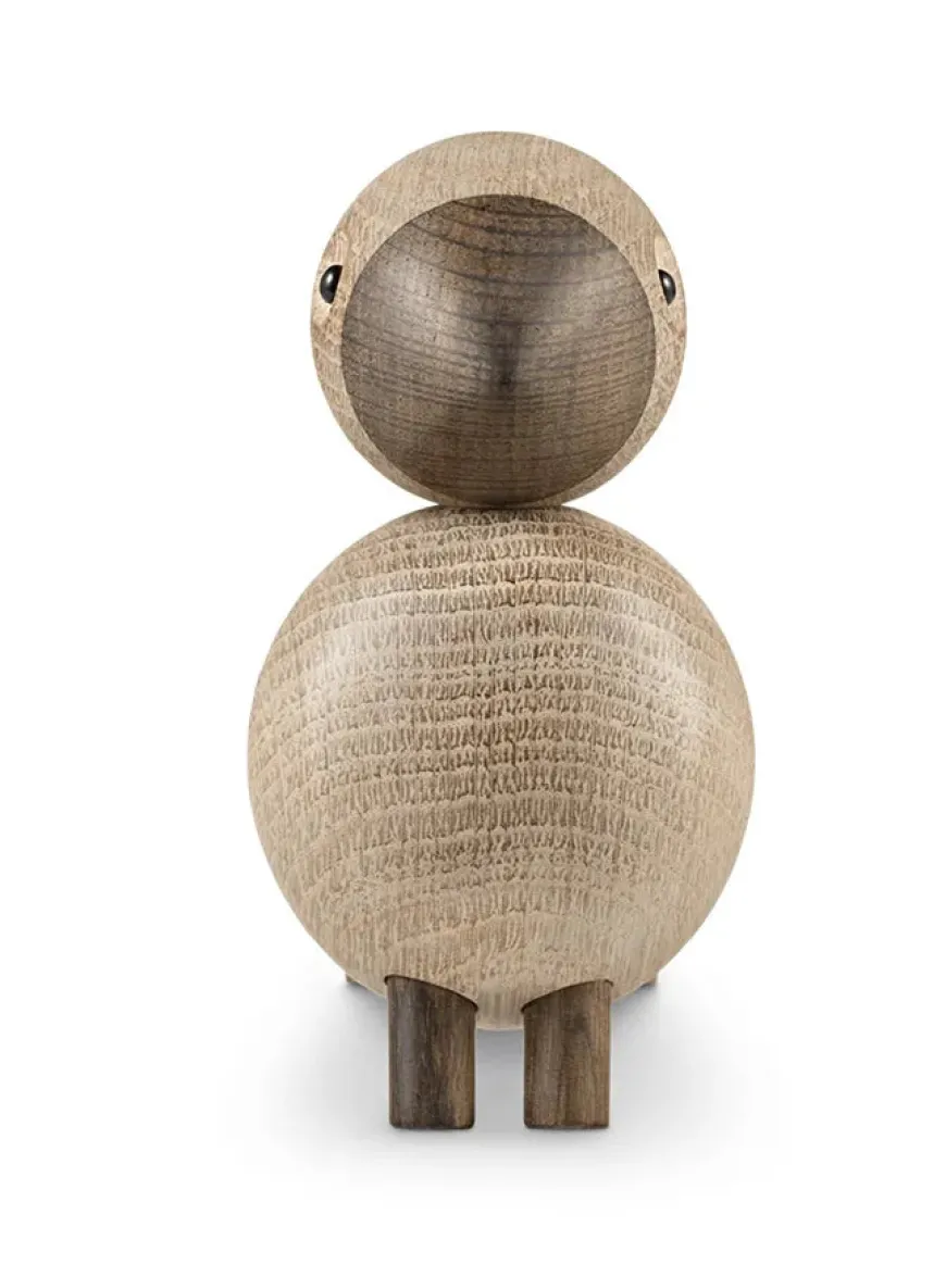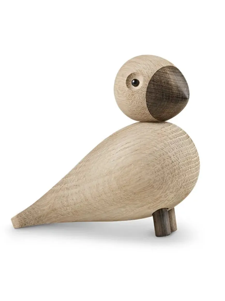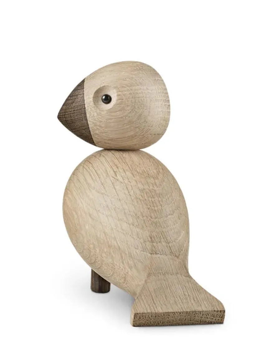 Kay Bojesen fuglen Alfred er sidst ankomne familiemedlem i rækken af trædyr fra aber til flodheste og sangfugle. Alfred er skabt i natureg og røget egetræ og passer ind i tidens bolig- og indretningstendenser, hvor det er naturmaterialerne, der får lov at dominere. Materiale: Natur egetræ og røget egetræ. Mål: Højde: 16 cm Bredde: 7,5 cm Dybde: 15 cm Se alle sangfuglene her: