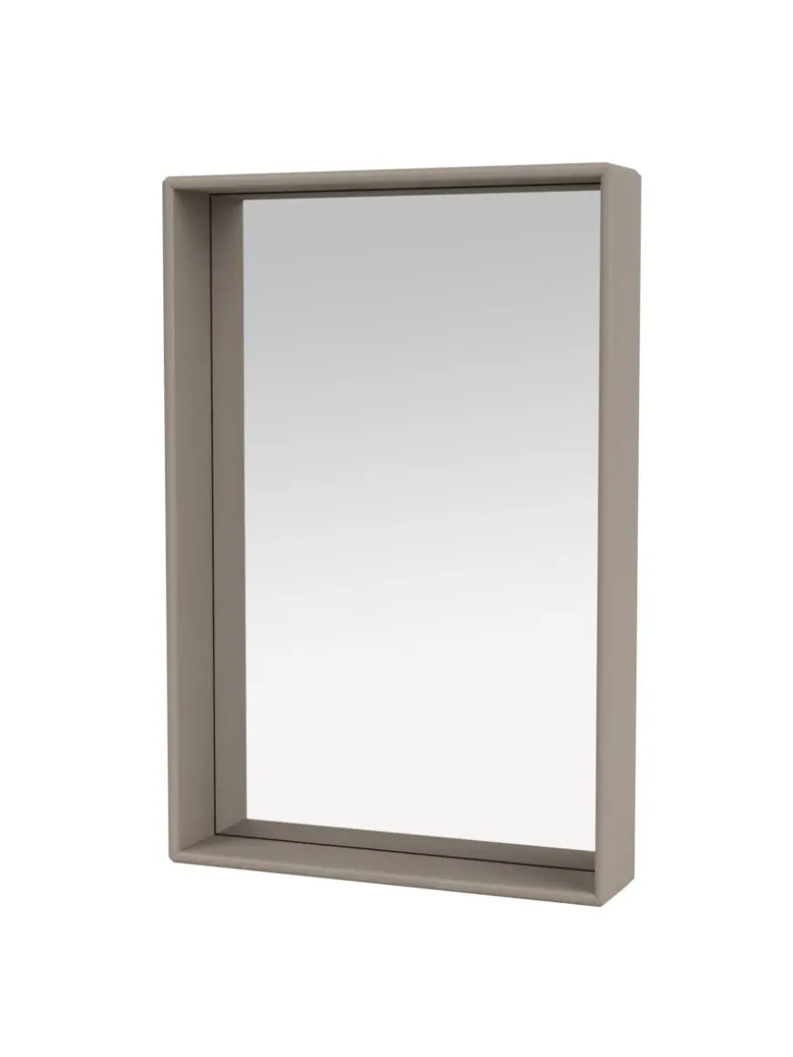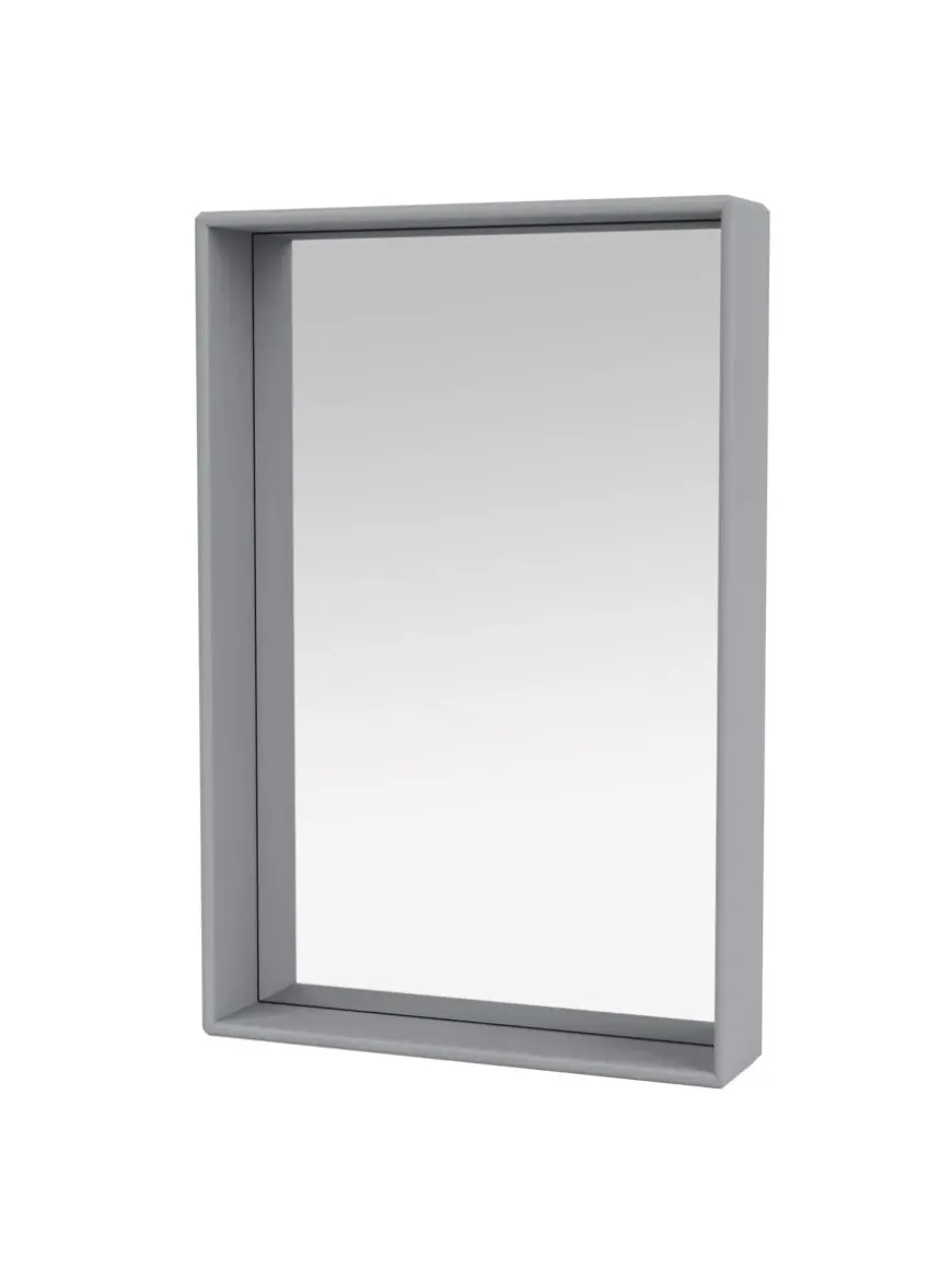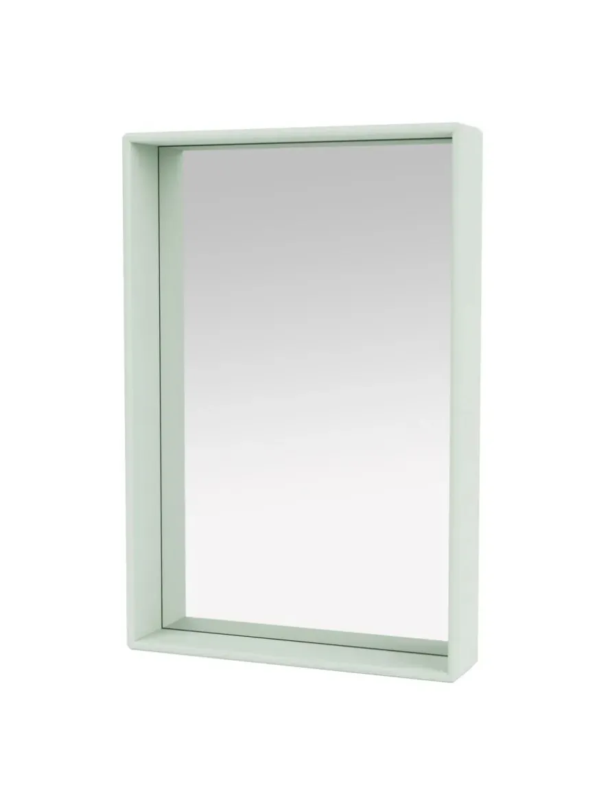 Spejlet kommer i Montanas poetiske farvepalet med 40 nuancer. Badeværelsesmodulerne er godkendt til badeværelser, men må ikke placeres nogen steder, hvor der opstår direkte kontakt med vand.