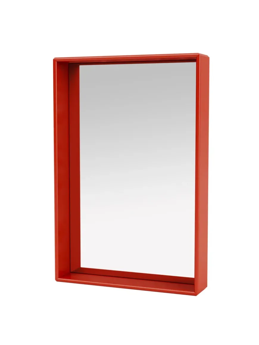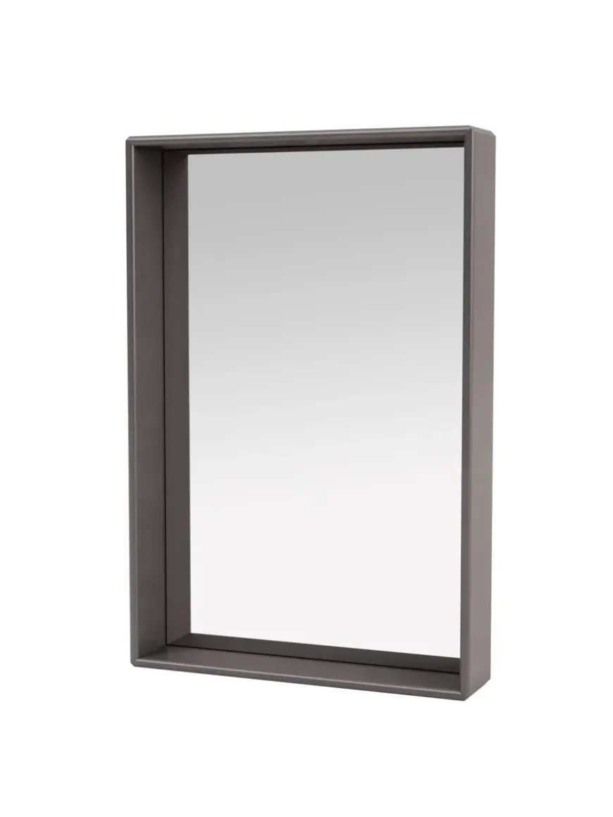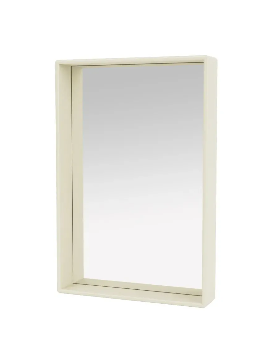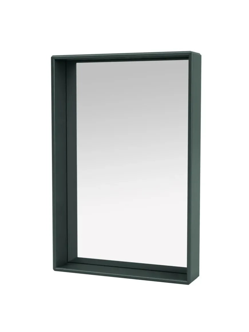 Spejlet kommer i Montanas poetiske farvepalet med 40 nuancer. Badeværelsesmodulerne er godkendt til badeværelser, men må ikke placeres nogen steder, hvor der opstår direkte kontakt med vand.