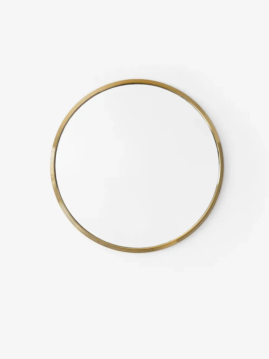 Det lille Sillon spejl fra &Tradition er designet Sebastian Herkner og laves krom eller messing. Det runde Sillon spejl har en diameter på 46 cm.