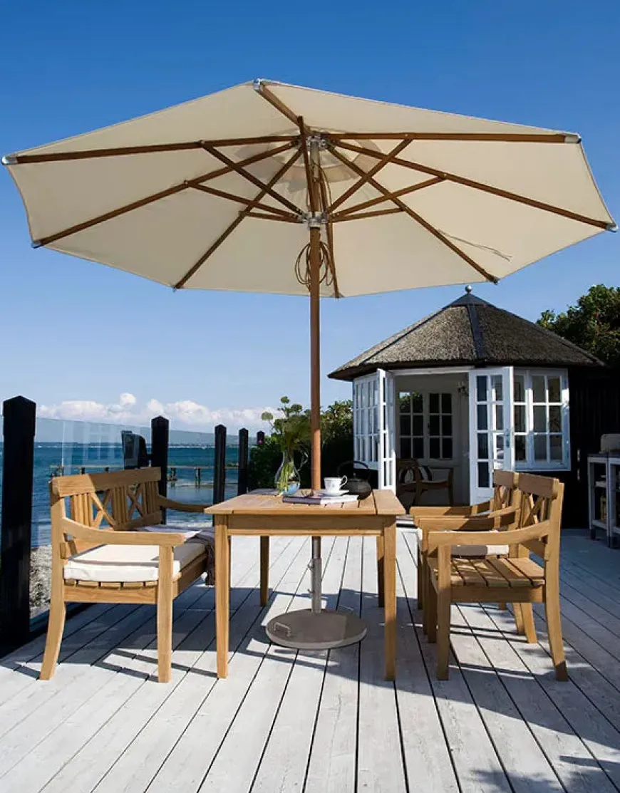 Skagerak Drachmann bænk fra Fritz Hansen. Drachmann bænkens karakteristiske kryds i ryggen er i dag et ikon for skandinavisk havemøbeldesign. Drachmann bænken er smuk som stand alone bænk og som en del af et klassisk havemøbelsæt med Drachmann bænk, bord og stol.