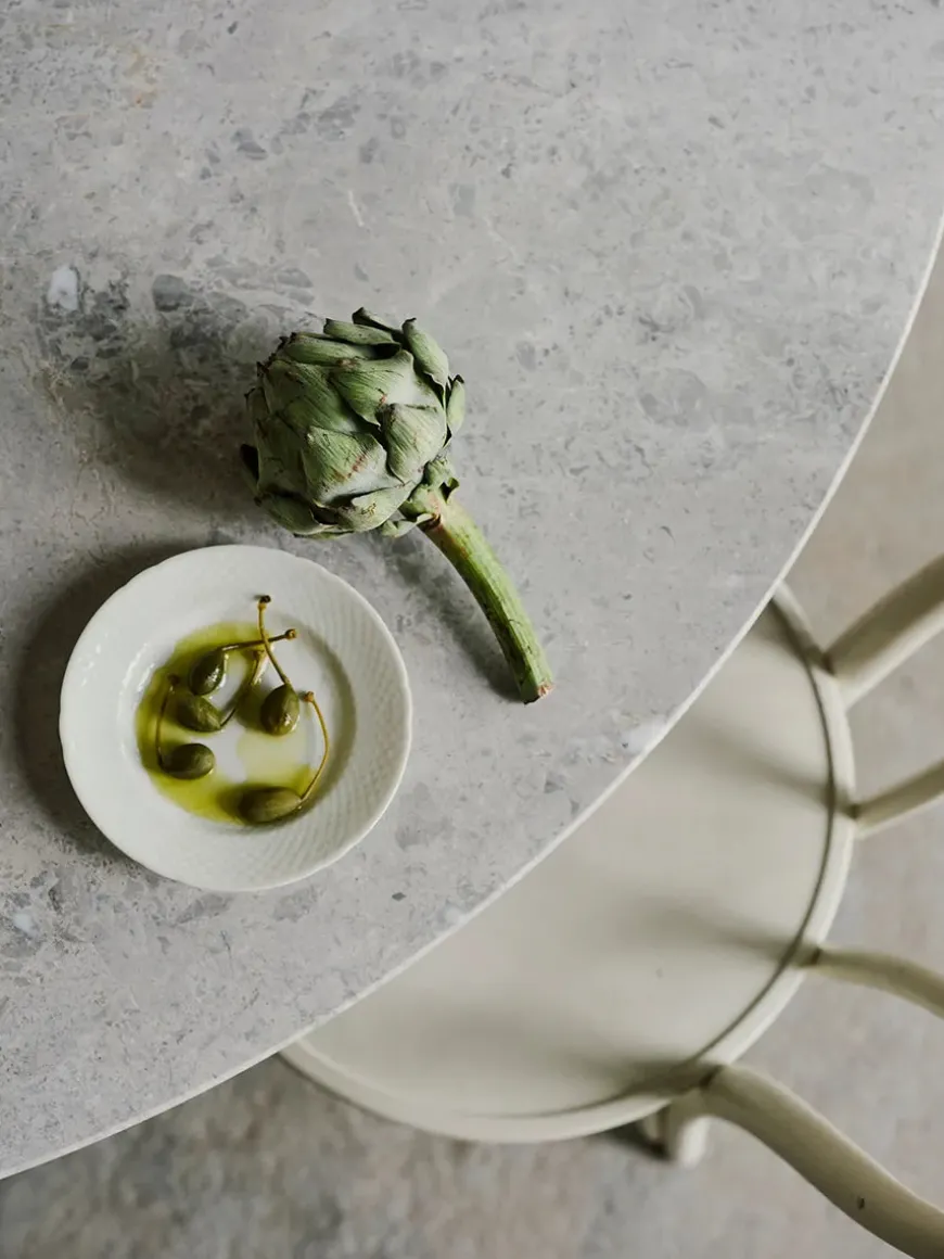 Solar spisebordet er lavet i en smuk marmor ved navn Montagna. Marmoren er gråbrun og med små hvide aftegninger hist og her. Der er masser at kigge på, og bordet vil ændre karakter i løbet af dagen alt efter hvilket lys, der kastes på det. Solar spisebordet i marmor fås i tre forskellige størrelser. Da bordet er i marmor, som er en natursten, er du sikret, at dit spisebord er et unika og ikke ens med noget andet.