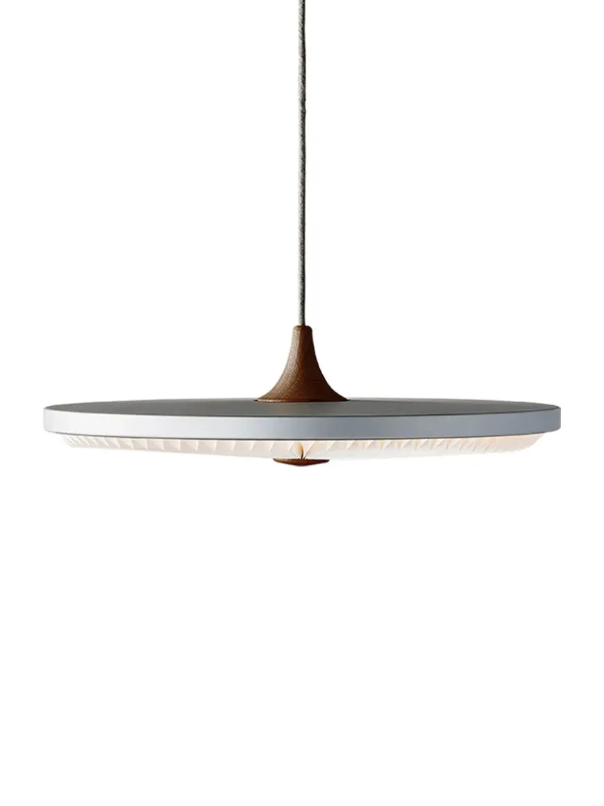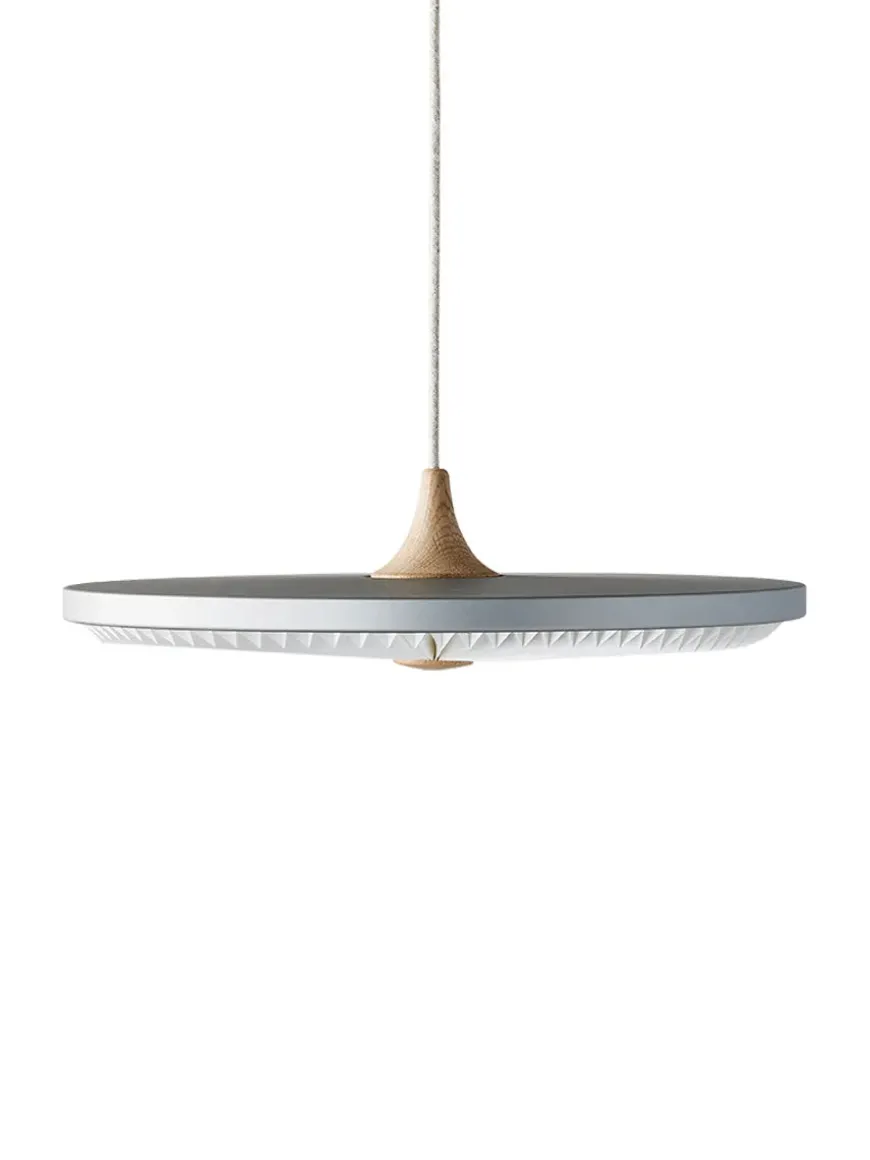Soleil betyder sol på fransk, og lampen har samme fine egenskaber med en lysspredning som en strålende sol – der spreder lyset fra sit centrum. Le Klint Soleil pendlens slanke design gør den meget anvendelig til at hænge over spisebordet, i restauranten eller mødelokalet. Lampen er uden lysdæmper, men kan benyttes med Casambi lysdæmper, hvor man kan styre lysstyrken via en gratis app/bluetooth på sin mobiltelefon. Soleil kan ikke benyttes sammen med andre allerede installerede lysdæmper-funktioner i boligen. Mål: Diameter: Ø 50 cm. Højde: 6 cm. Farve: Silver Cloud Træsort: Lys eg Skærm: Papir Model: 198 Designet af: Philip Bro Ludvigsen