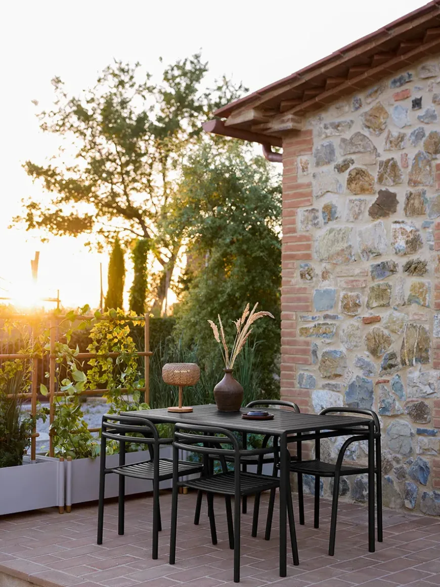 Special Edition Jacobsen Plus har i samarbejde med Cane-line udvalgt den sorte farve, som helt eksklusivt kun forhandles hos os. Bliss serien er i aluminium, som er både modstandsdygtigt og holdbart. Bliss havebordet er enkelt og stilrent, og vil passe ind i langt de fleste haver, terrasser eller altaner. Bliss bordet kommer i to størrelser, hvoraf denne er den største. Havebordet kan fint have 4 personer siddende, og er perfekt til sommerdage udendørs. Bliss serien fra Cane-line fås desuden i tre andre farver, som er flotte at mixe.
