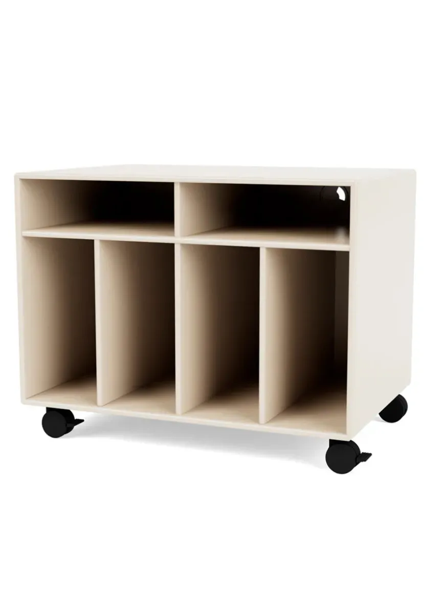 Bag Spin modulet er der kabelgennemføring, således du kan skjule grimme ledninger. Montana Spin I modul med seks rum, der eksempelvis passer til LP’ere eller grammofonplader.