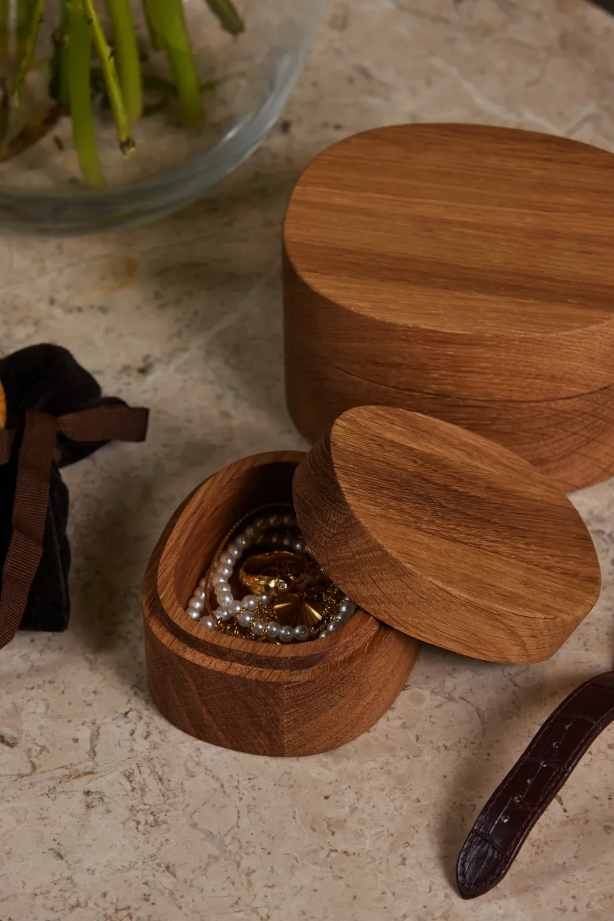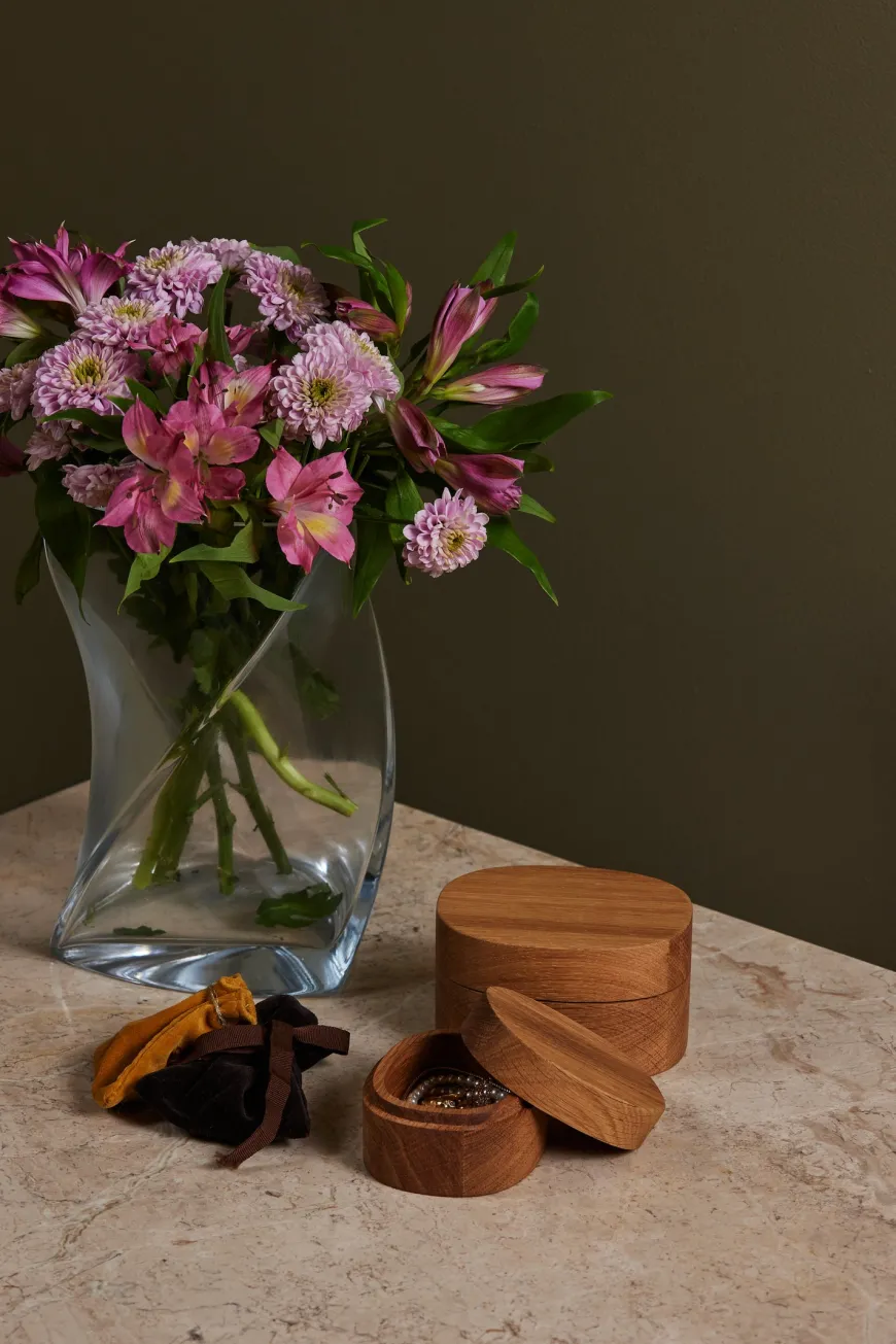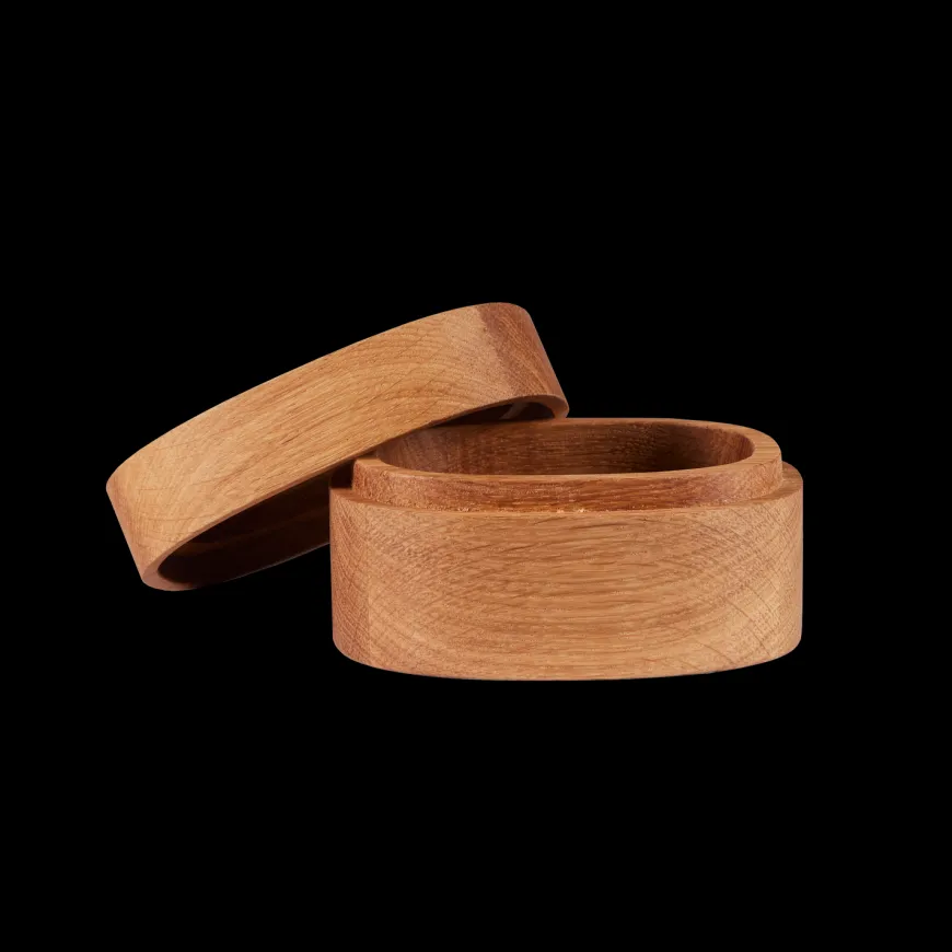 Inspireret af Piet Heins leg med form og funktion bringer denne Superelliptisk Æske et strejf af harmonisk geometri og ægte dansk håndværk ind i dit hjem. Fremstillet i smukt FSC-certificeret eg, kombinerer æsken naturlig elegance med miljøbevidsthed. Designet følger den ikoniske superellipse-kurve, en form mellem ellipse og rektangel, som Piet Hein skabte – det giver æsken et blødt, tidløst udtryk og gør den perfekt til smykker, nøgler eller andre små skatte. Den naturlige oliering fremhæver egetræets struktur og farvetoner. Placeret på dit natbord, skrivebord eller i entréen er den både funktionel og skulpturel – en lille, men markant detalje, der taler om dansk designtradition og udsøgt håndværk.