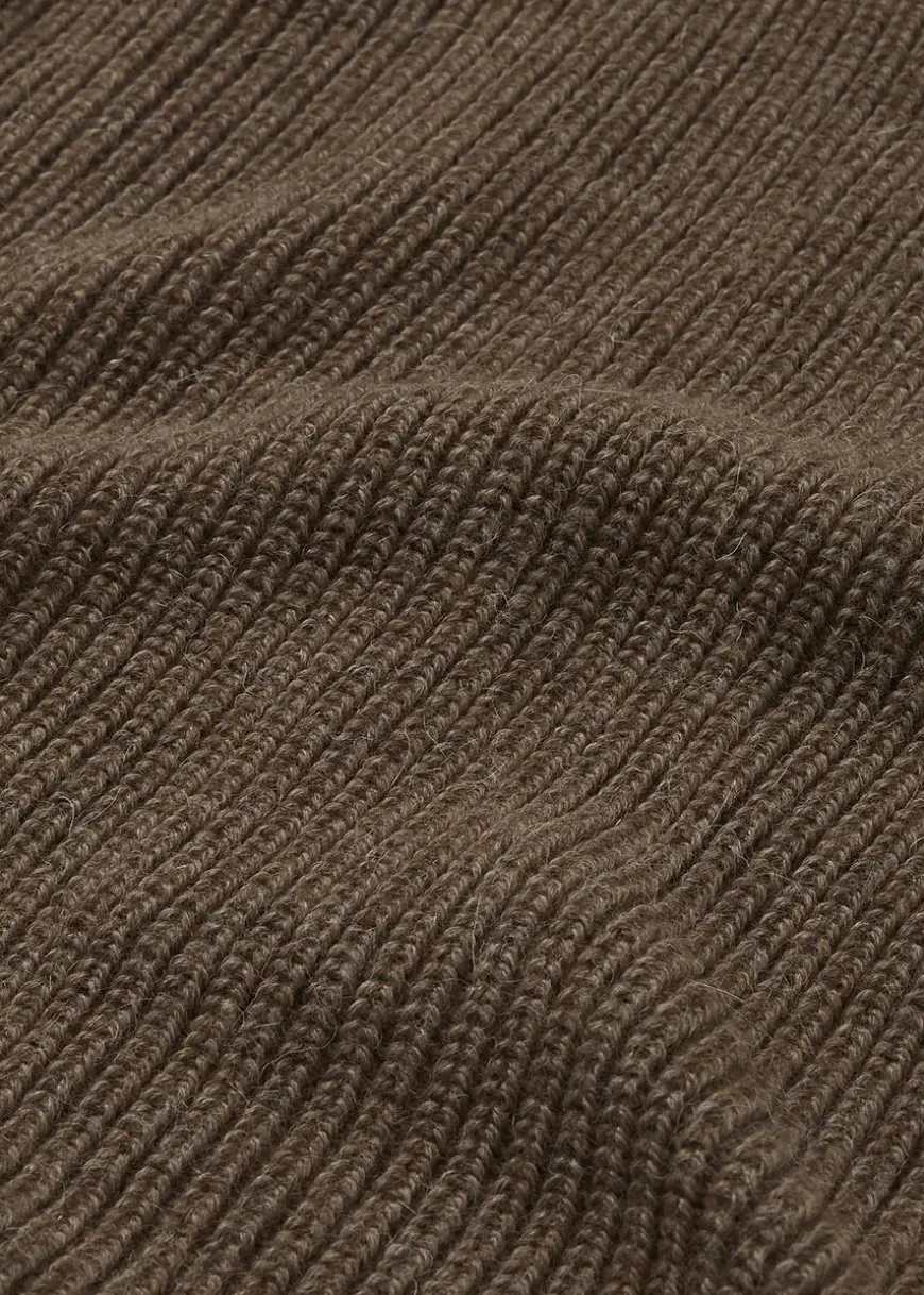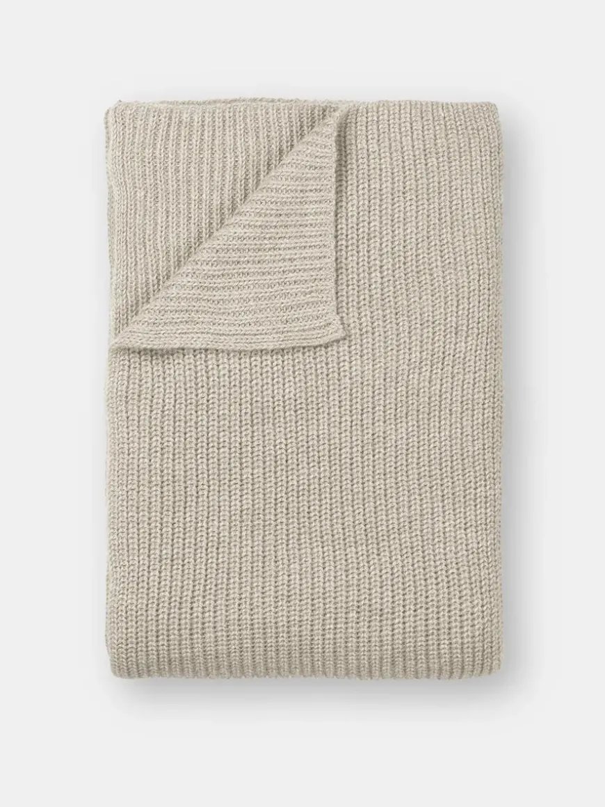 Et klassisk plaid strikket i ribstruktur, der giver tæppet blødhed og volume. Det er fremstillet uden brug af kemikalier og er derfor i fine naturlige farver. Lavet i det fineste babylama uld.