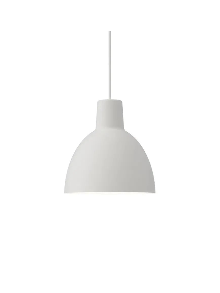 Toldbod 400 pendlen fra Louis Poulsen udsender et blødt, nedadrettet lys. Den matte, hvidlakerede inderside af den elliptiske skærm hjælper med at sikre en ensartet fordeling af lyset.