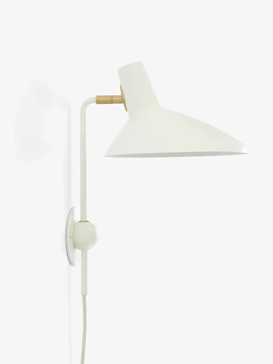 HM12 Væglampen er inspireret af skitser af den originale lampe af Hvidt & Mølgaard, hvor Tripod-væglampen forbliver tro mod det ikoniske Tripod design. Ligesom de andre lamper i Tripod kollektionen, så er væglampen fremstillet af lakeret aluminium med messing detaljer. Væglampen kan bruges flere steder i hjemmet, da skærmen har en drejefunktion.