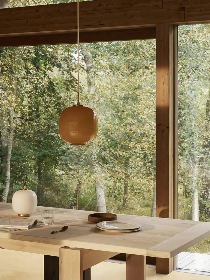 VL45 Radiohuspendlen giver et fantastisk og gennemgående lys. Kvaliteten af den mundblæste rosa opalskærm gør, at lampen er ensartet oplyst. Kombinationen af messing og rosa er super smuk, og giver den ellers klassiske lampe et lille twist af noget nyt. Messingen er ubehandlet og vil med tiden patinere.