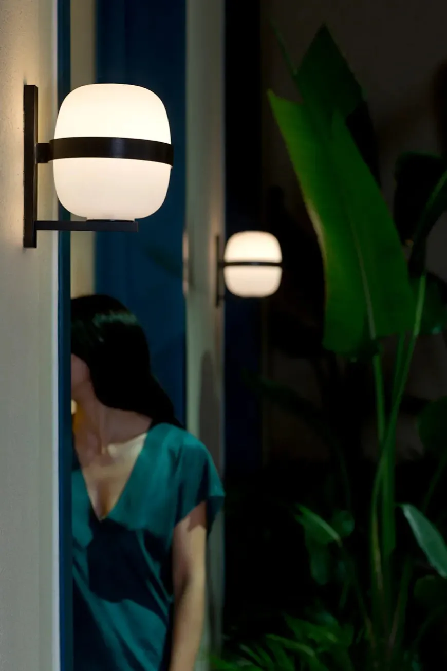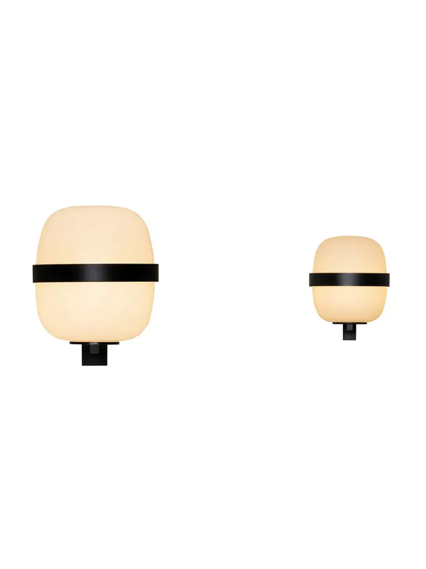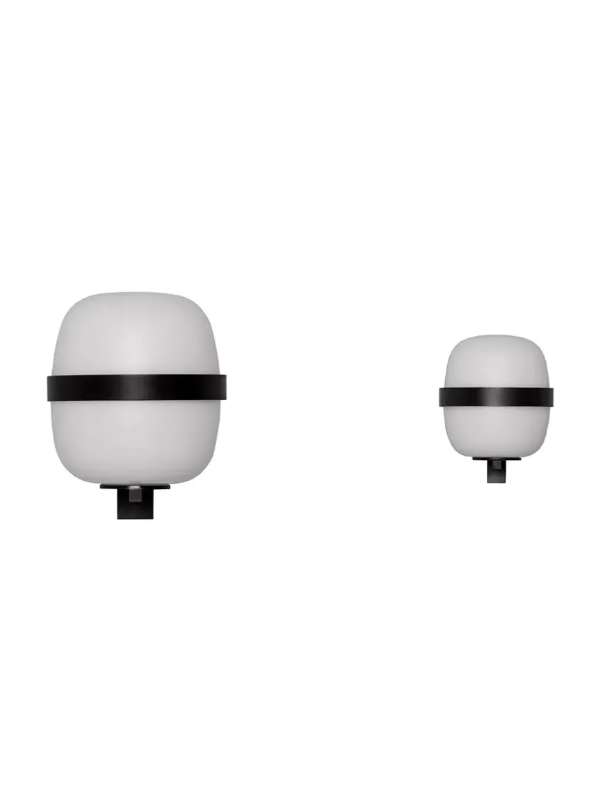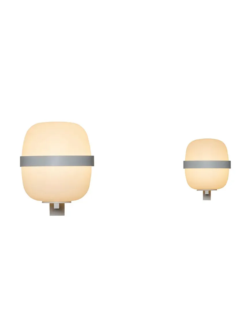Væglampen kan bruges både indendørs og udendørs. Lampen findes også i en større version .