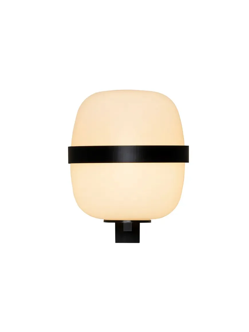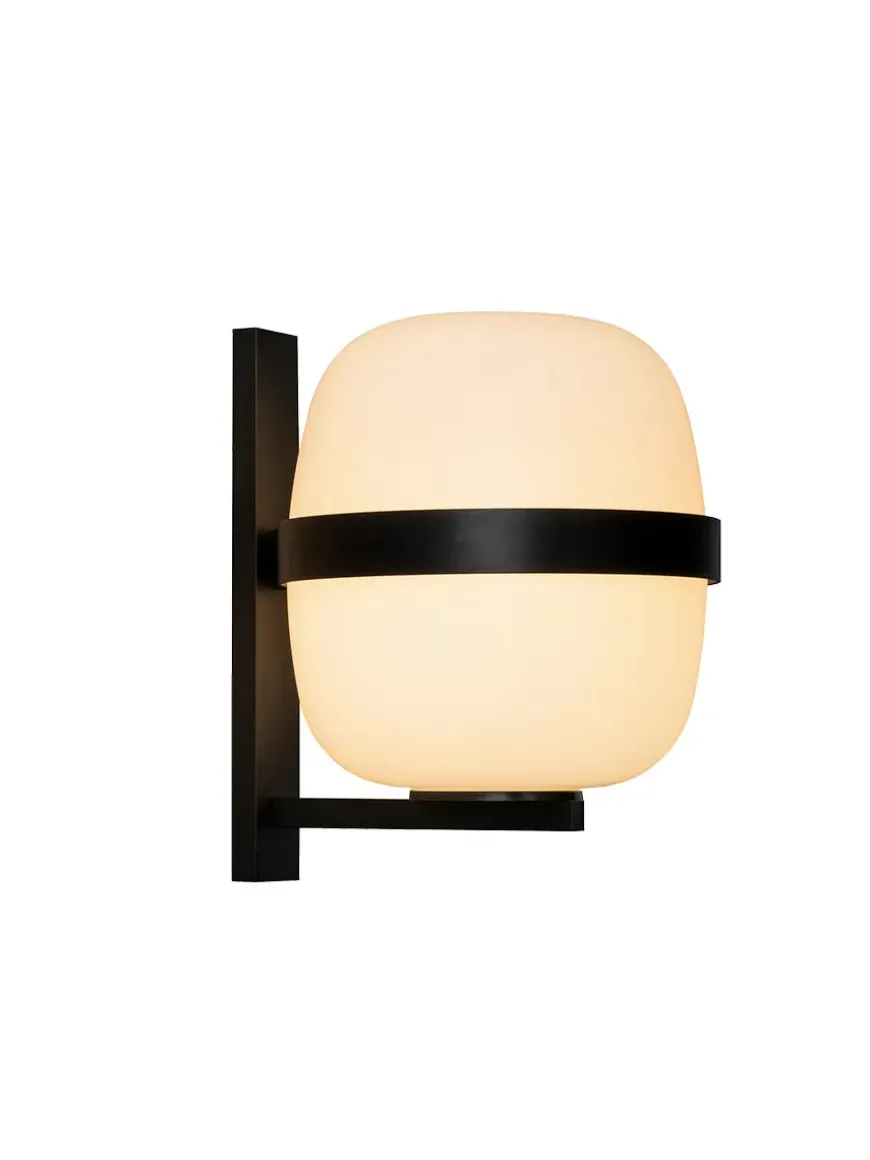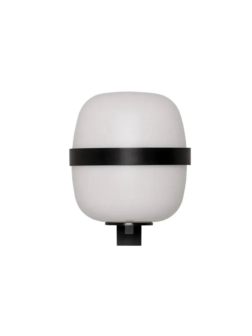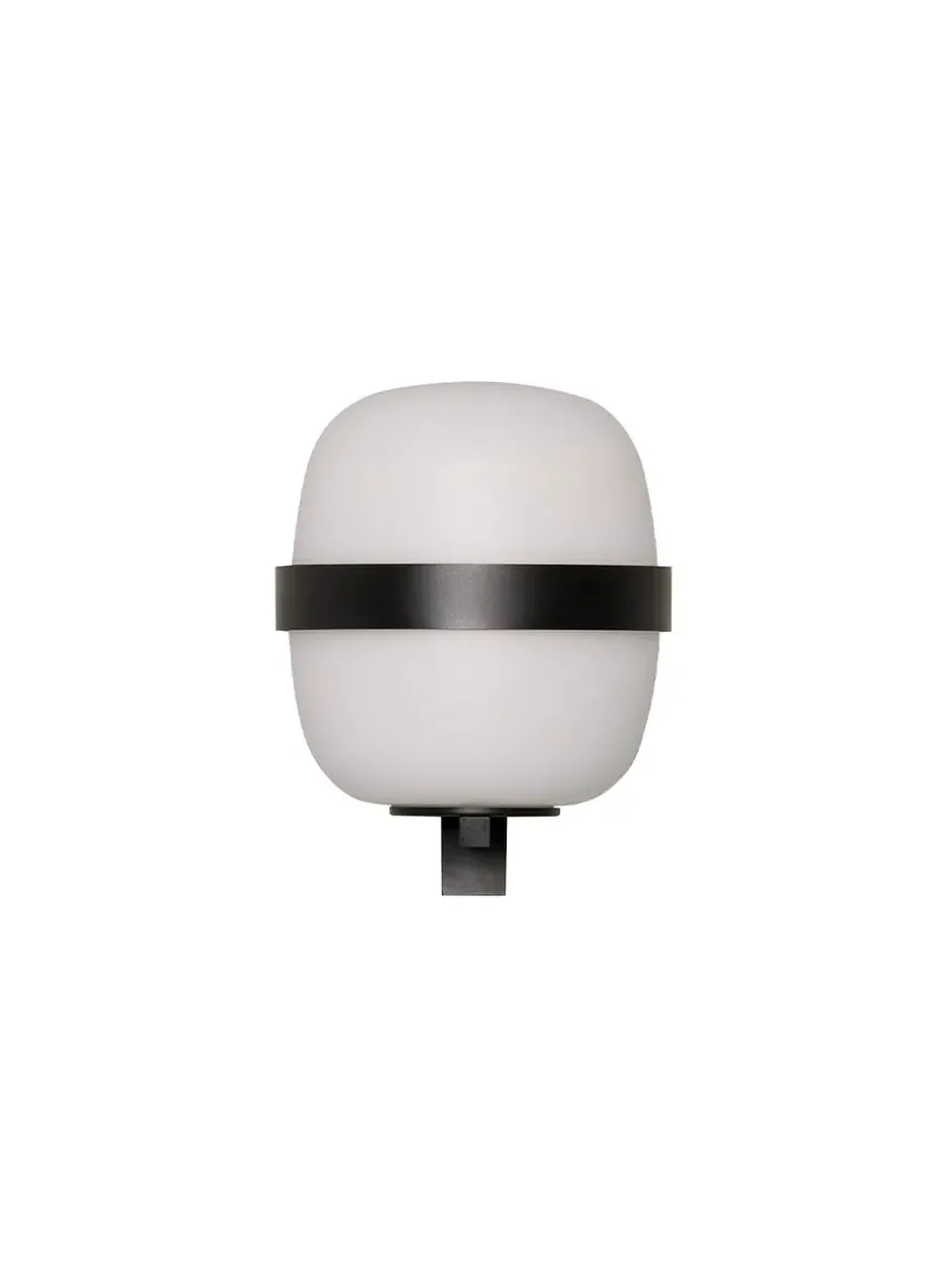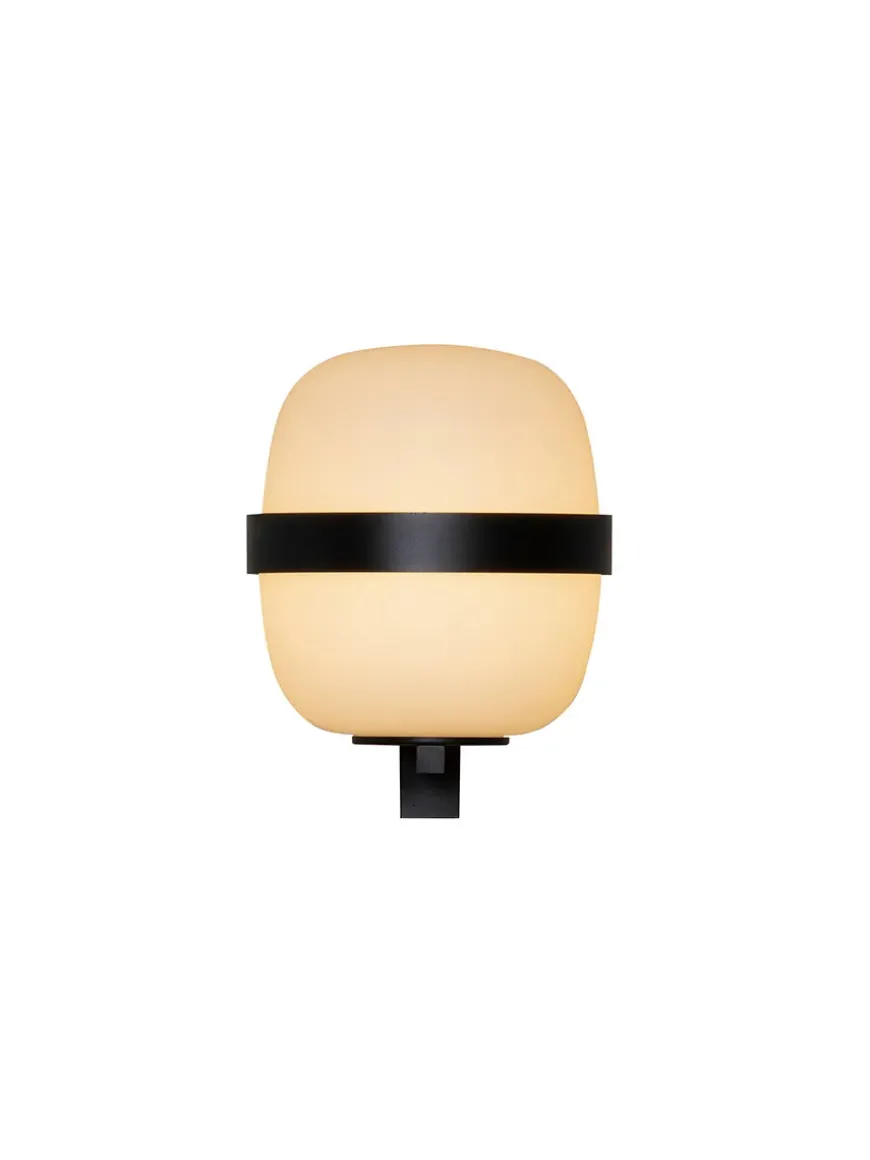 Væglampen kan bruges både indendørs og udendørs. Lampen findes også i en større version .