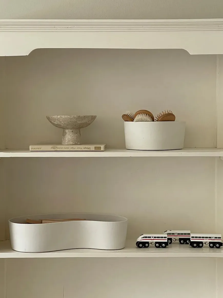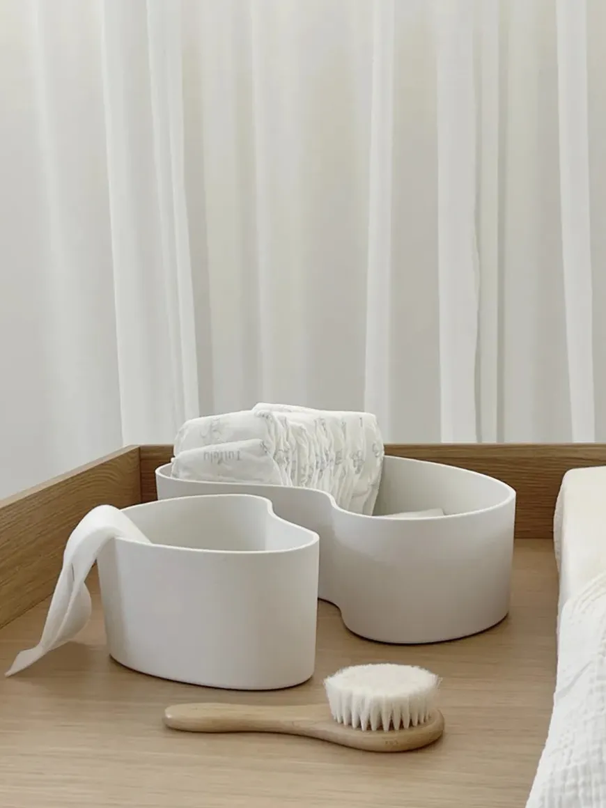 WAVE opbevaringskurve kombinerer smukt design med praktisk funktionalitet til dit hjem. WAVE er en praktisk og funktionel løsning uden at gå på kompromis med æstetikken – skabt til den moderne familie. Kurven er fremstillet af 100% silikone, der både er vaskbart og som kan tåle temperaturer op til 100 grader. Det gør den ideel til organisering på puslebordet, børneværelset eller badeværelset. Brug WAVE til alt fra bleer og babyplejeprodukter til legetøj og andre småting. Med WAVE får du den perfekte balance mellem praktisk funktionalitet og stilfuldt design, der passer ind i ethvert hjem.