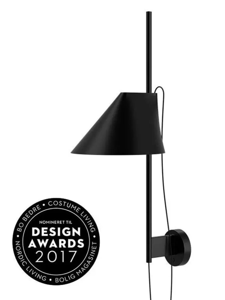 Yuh væglampe i sort eller hvid fra . Armaturet har et retningsbestemt, nedadrettet og blændfrit lys. Skærmens vinkel kan justeres for optimering af lysdistributionen. Den smalle åbning i toppen af skærmen giver en stemningsfuld belysning op ad stangen. Lampen tændes, slukkes og dæmpes øverst på bagdåsen. Lampen kan monteres direkte på el-udtag, da driveren er indbygget i bagdåsen.