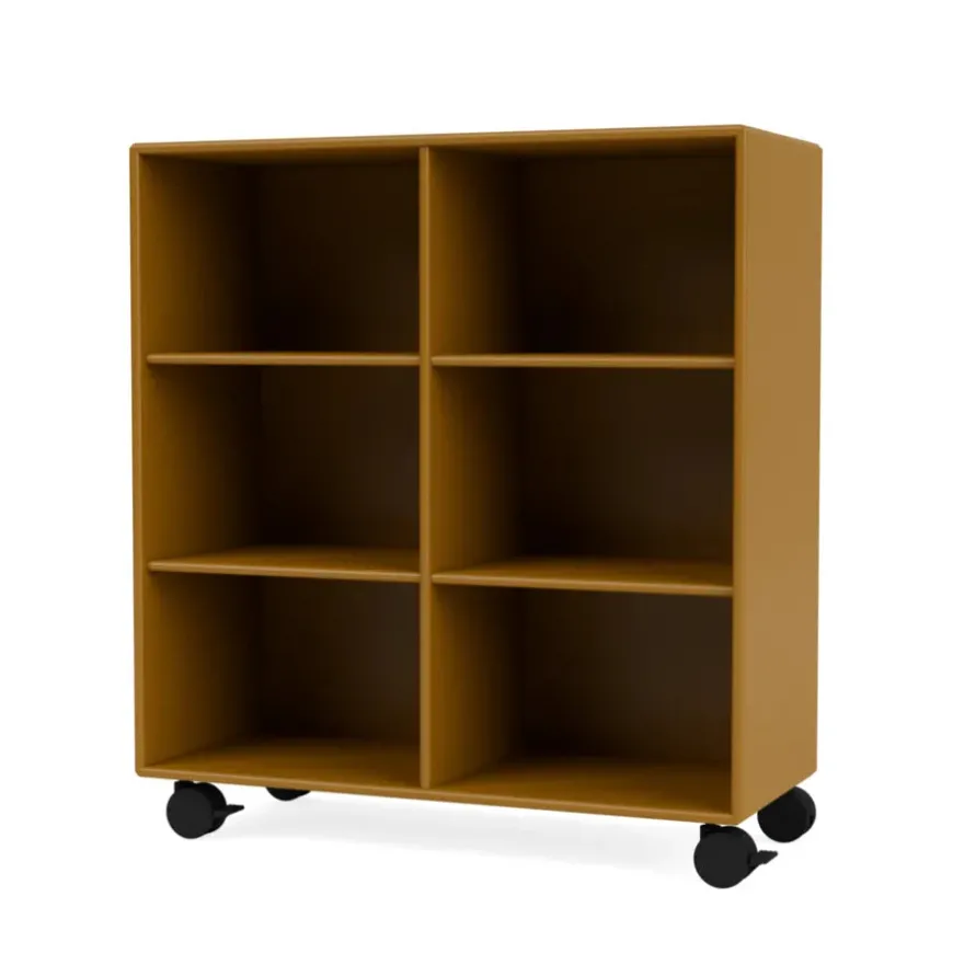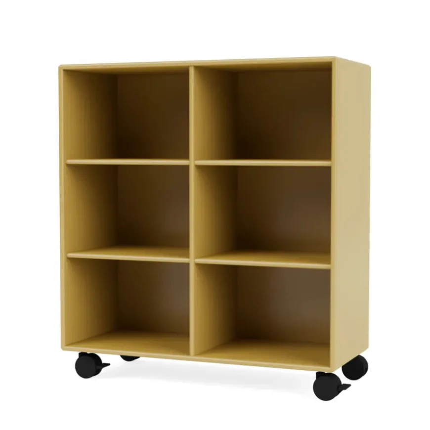 Reolen kan bestilles i alle Montanas 40 lakfarver med enten ophæng, sokkel, ben eller hjul.