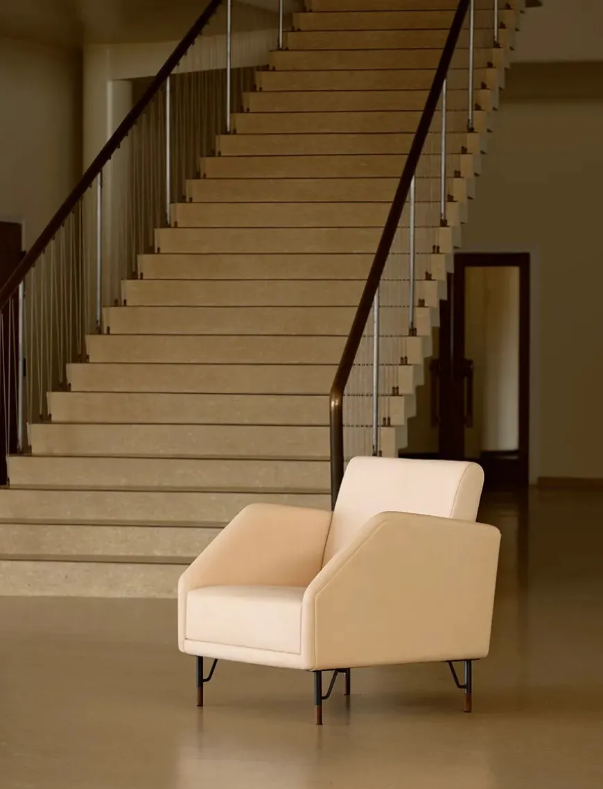 Nu relancerer House of Finn Juhl 77-Stolen. 77 Stolen er designet i 1953 af Finn Juhl. Designere Finn Juhl eksperimenterede i denne periode med strømlinethed og et mere industrielt udtryk. Det fornemmes tydeligt i 77-Stolen, som er mere kantet i formsproget og ikke med det samme “svung”, som Finn Juhls designs ellers har båret præg af. På trods af den nye stil står det dog stadig klart, at 77 Stolen stadig er en Finn Juhl klassiker. Kontakt os endelig for flere polstringsmuligheder.