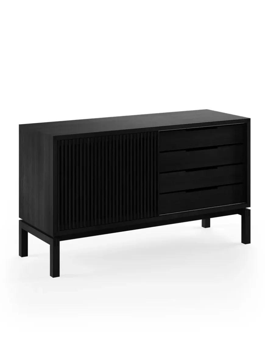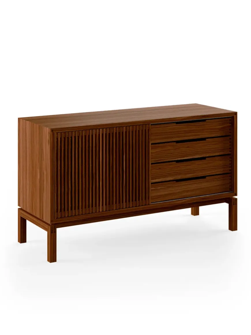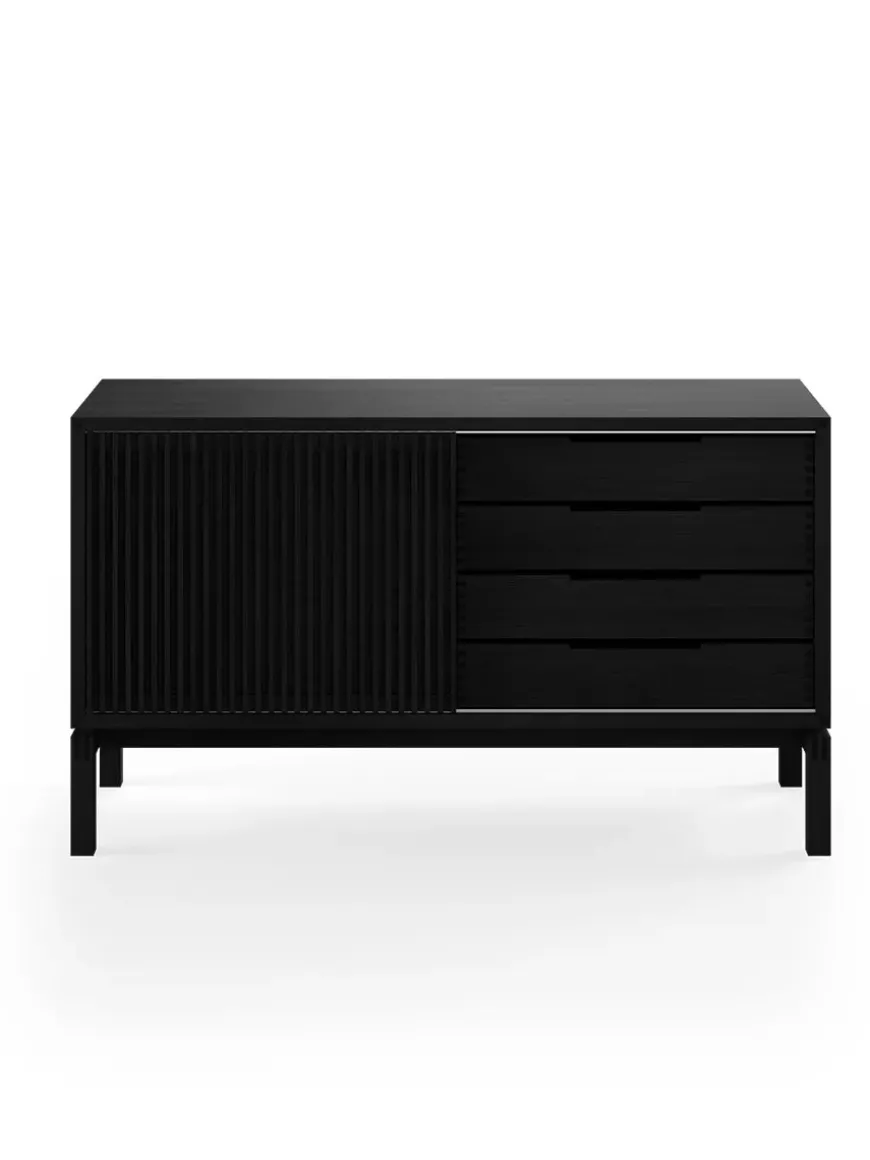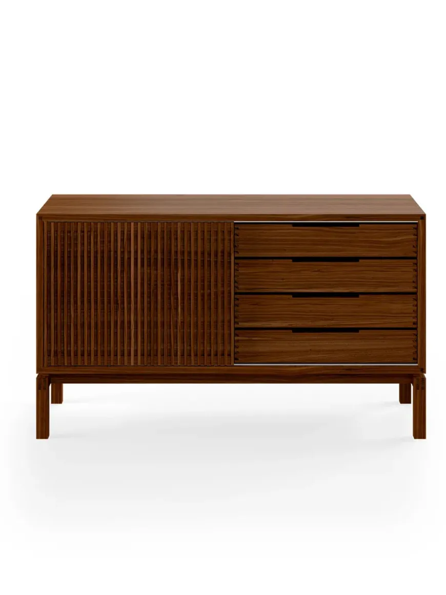 AK 2030 skænken er designet af Nissen & Gehl. Skænken er lille og med mange elegante håndværksmæssige detaljer. AK 2030 skænken er snedkereret på fineste vis, og det ses tydeligt, at der er lagt stor vægt på håndværket. Skænken har skydelåge med lameller og skuffer med tappede samlinger. Bag skydelågen er et åbent rum med en glashylde. Den smukke skænk fås også i en længere udgave, AK 2060, som ligeledes giver masser opbevaringsmuligheder. AK 2030 skænken fås i flere forskellige træsorter og behandlinger. Design: Nissen & Gehl Producent: Aksel Kjersgaard Mål: L 134 x D 48 x H 77,5 cm Vægt: 77 kg Materiale: Massivt træ