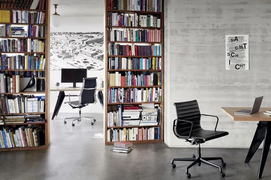 Aluminium Chair EA 117 Kontorstol, sort læder fra Vitra