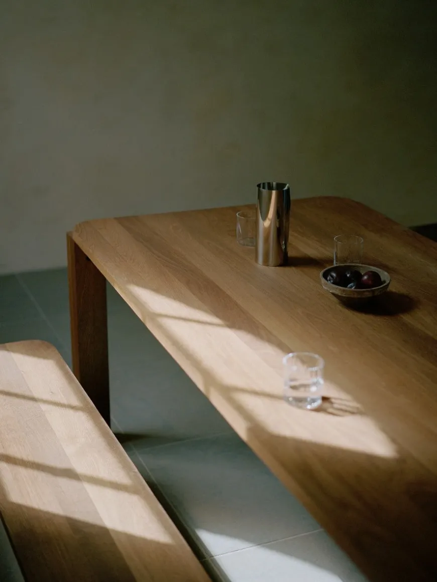 Atlas Bænk 100×32 er John Astburys moderne fortolkning af den klassiske post-og-overligger-arkitektur: runde, solide ben bærer en slank siddeflade i massiv eg. Resultatet er et roligt, skulpturelt udtryk med stor stabilitet uden visuel tyngde. Bænken passer perfekt ved spisebordet, i entréen eller for enden af sengen og fås i natur eller røget eg, så træets åretegning får lov at stå frem. Med sine kompakte mål (L100 × D32 × H46 cm) giver Atlas bænken fleksible siddepladser og en varm, taktil materialitet, der klæder ethvert hjem.