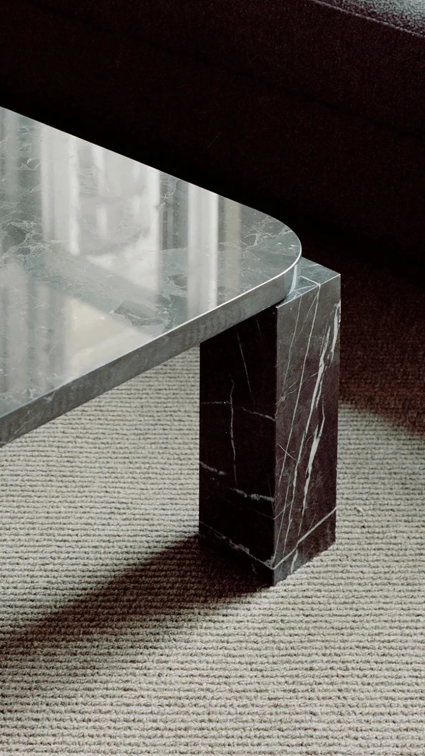 Atlas Sofabord 820x820, Unfilled Travertine fra New Works