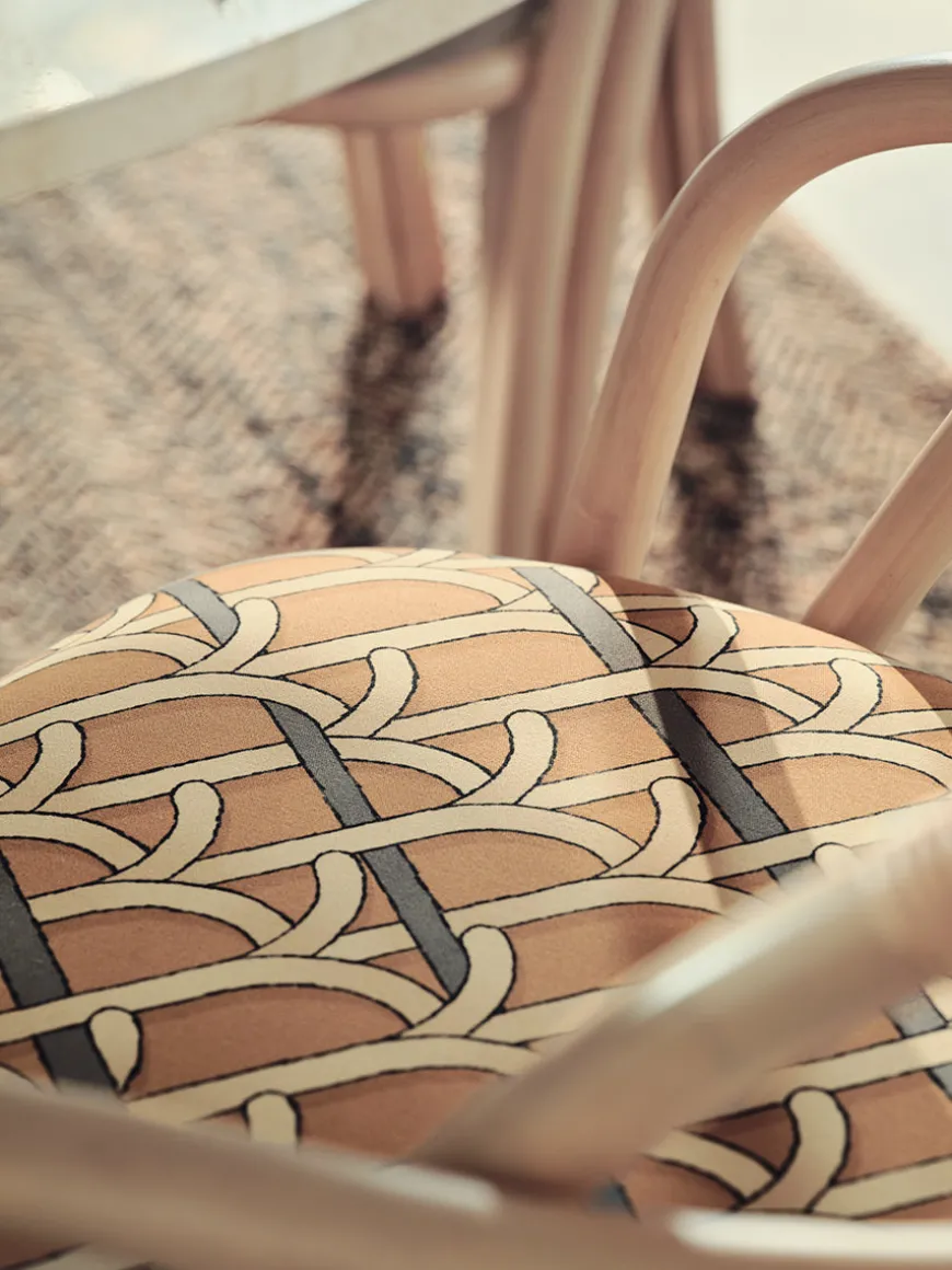Rammen er udført i dampbøjet rattan, som giver de organiske linjer, der kendetegner serien. Vælg mellem tre rammefarver og polstrede sæder i flere tekstiler, så du kan tilpasse udtrykket til dit spiseområde. Bistra serien er designet for GUBI af Michele De Lucchis designstudie AMDL CIRCLE og omfatter en spisestol, en loungestol og en trebenet skammel.