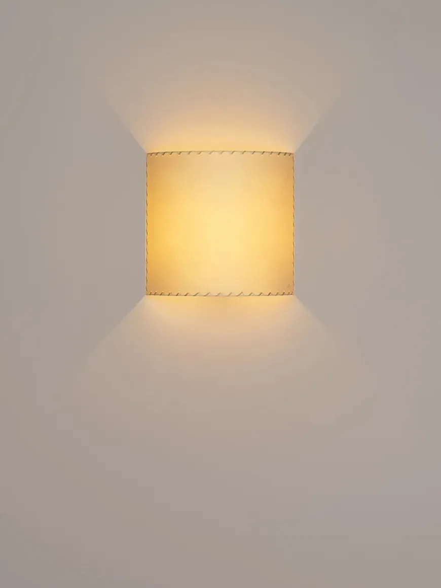 Comodín cuadrado er en minimalistisk firkantet væglampe. Lampen har en buet skærm, der gør at lyskilden skjules fra siden. Med denne lampe får du et varmt og hyggeligt lys, som frigives opad og nedad, samtidig lyses lampeskærmen blidt op. Comodín cuadrado er oplagt at bruge i entreen, hvor den skaber en indbydende stemning med sit hyggelige lys og stilrene design. Lampen kan også sagtens bruges i stuen eller i soveværelset.