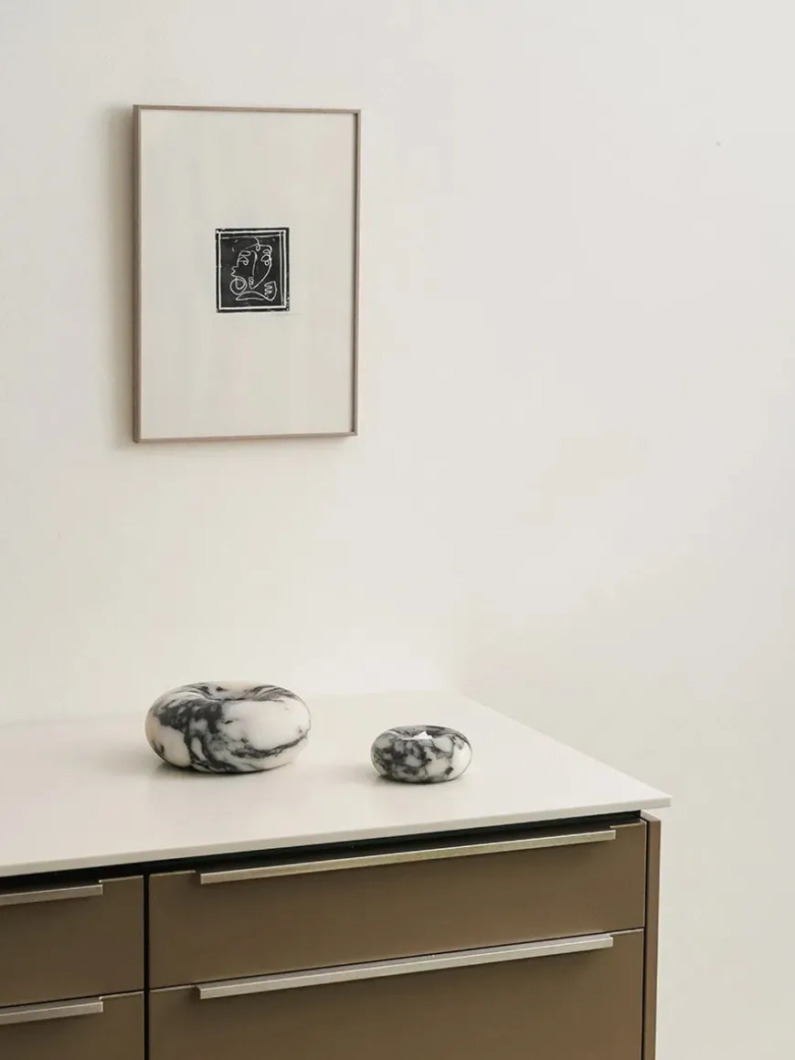 Cosmos er halvt brugsgenstand, halvt kunstobjekt. Det lille kugleformede objekt har en lille fordybning som gør, at der kan lægges noget i eller på det. Cosmos er udformet i det smukke materiale, travertin, som er med naturlige huller og aftegninger. Den lille Cosmos her er eksempelvis super fin at bruge som saltkar i køkkenet eller til smykker på badeværelset.