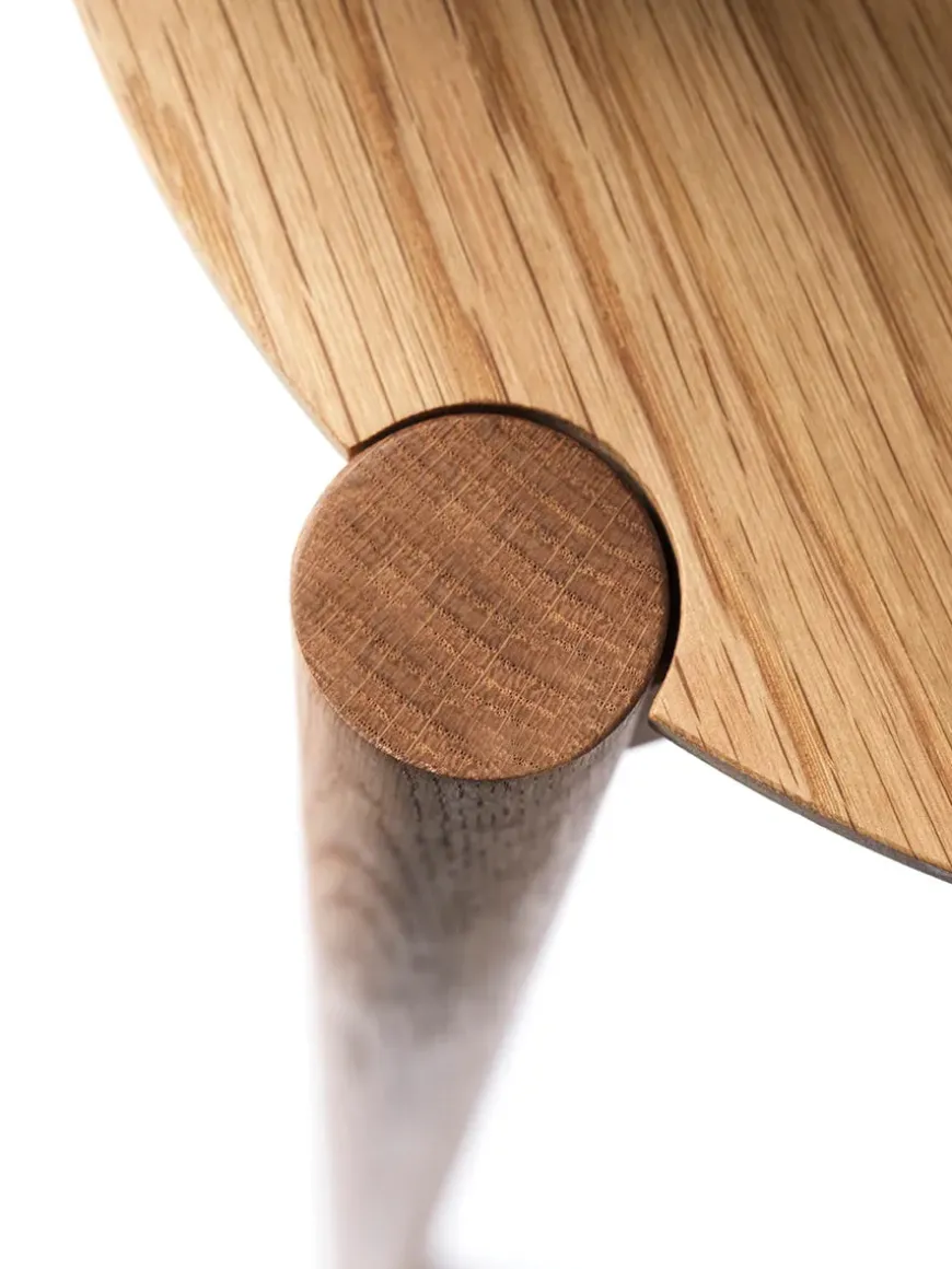 D102 Sofabordet fra FDB, også kaldet Søs, er et alsidigt og let sofabord, der passer ind i alle hjem. Det lille, runde egetræsbord er designet af Stine Weigelt i 2017.