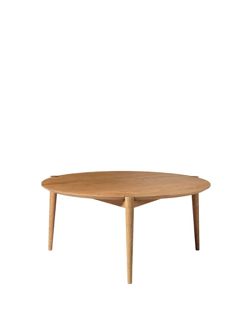 D102 Sofabordet fra FDB, også kaldet Søs, er et alsidigt og let sofabord, der passer ind i alle hjem. Det smukke, runde egetræsbord er designet af Stine Weigelt i 2017.