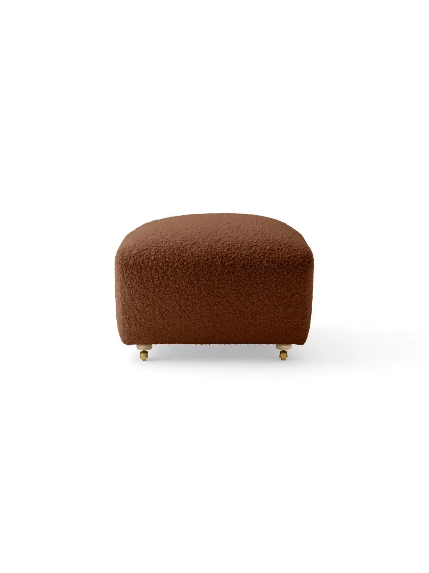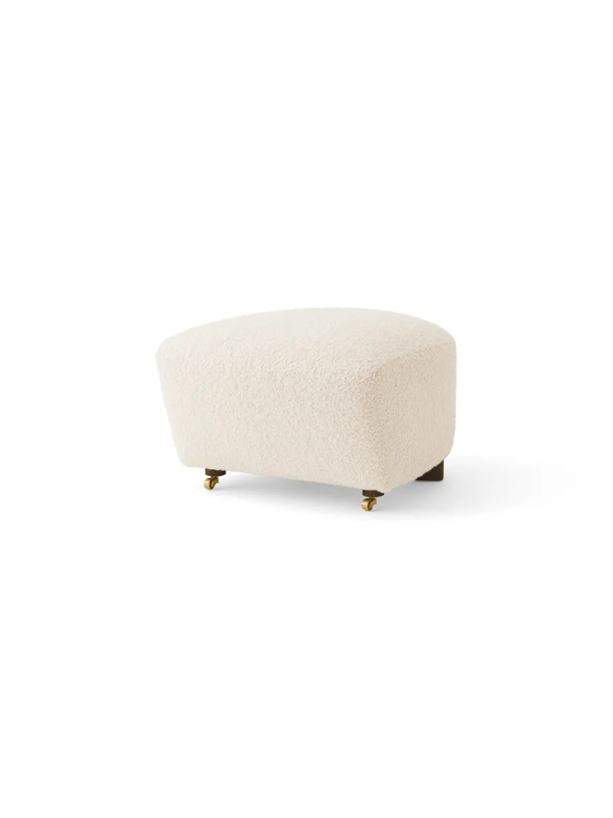 Den originale fodskammel til Den Trætte Mand – her i Baena 15, en lys beige bouclé fra Limonta, der giver en rolig, varm tekstur og matcher lænestolen perfekt. Vælg ben i eg eller mørkbejdset eg; de forreste messinghjul gør den let at flytte og tilfører en diskret, eksklusiv detalje. Brug den foran stolen, som ekstra siddeplads eller som lille sidebord med en bakke.
