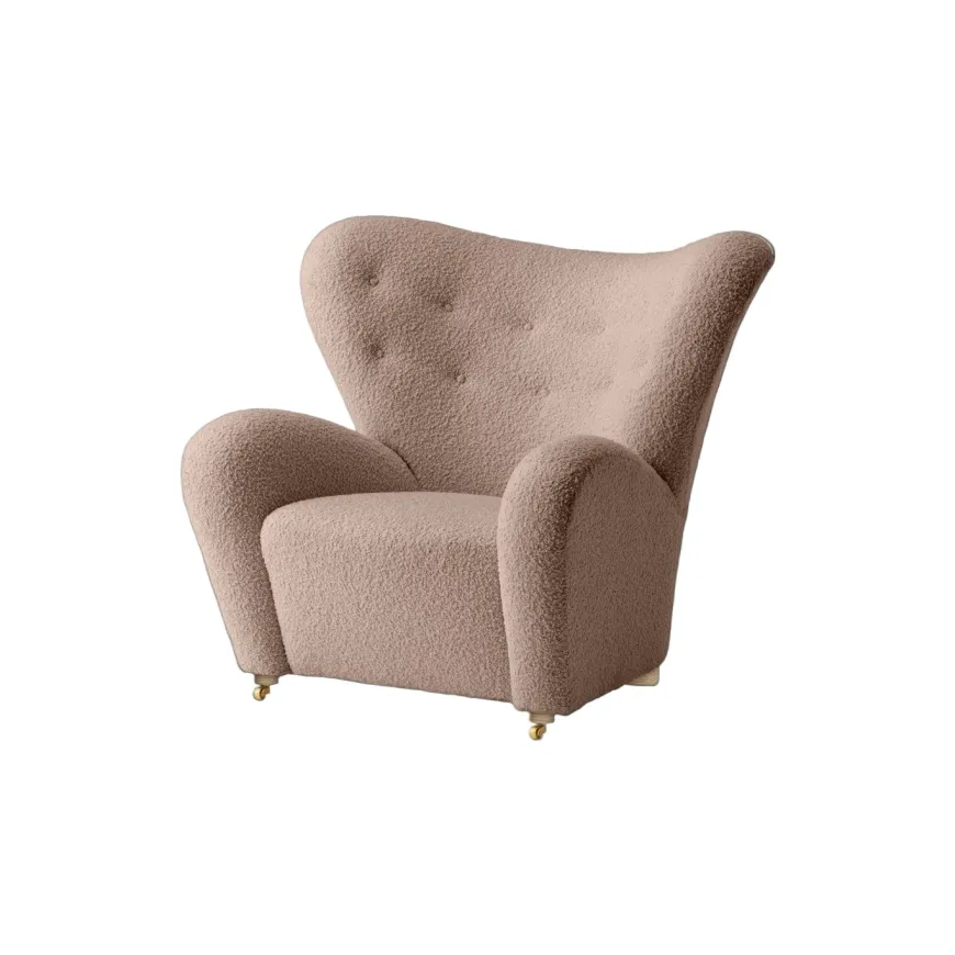 Den Trætte Mand i Baena 15 (lys beige bouclé) er Audo Copenhagens poetiske opdatering af Flemming Lassens klassiker. Den runde, “vingede” form omslutter kroppen, mens den taktile bouclé giver rolig varme til indretningen. Vælg ben i eg for et lyst, naturligt udtryk – eller mørkbejdset eg for en skarp, grafisk kontrast. Med forreste messinghjul, generøse mål og mulighed for matchende ottoman er dette et tidløst statement-piece skabt til hverdagsluksus i stuen, læsehjørnet eller soveværelset.