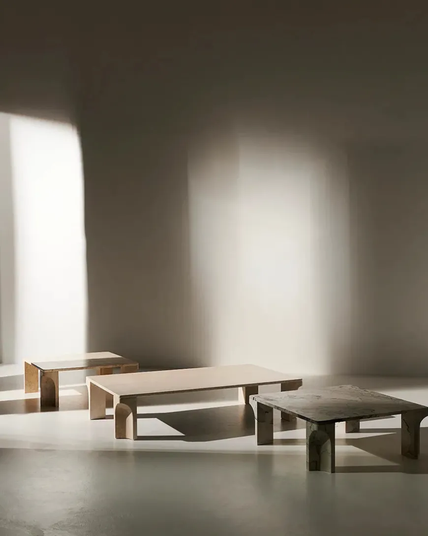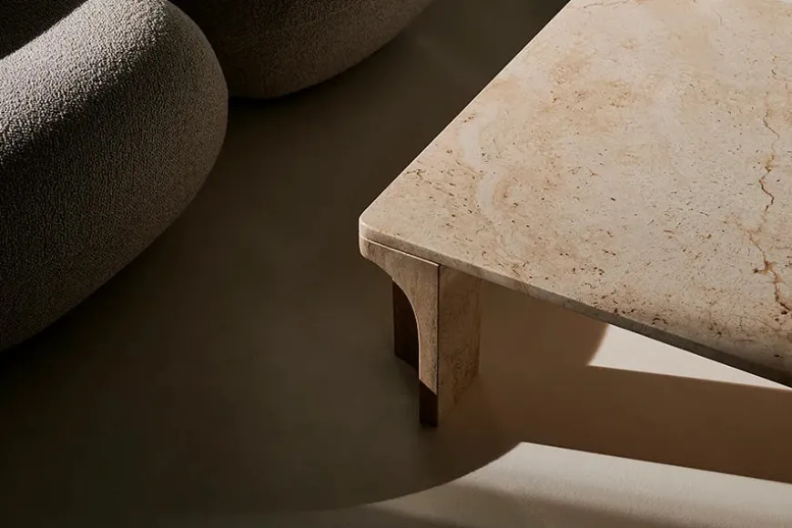 Doric Coffee Table 140 x 80 cm, Neutral White Travertine fra GUBI