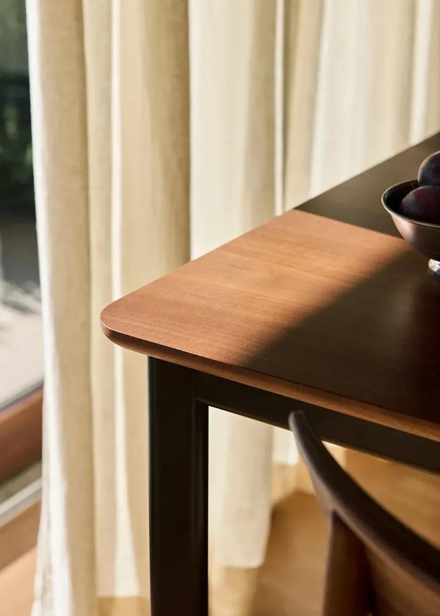 Drip spisebordet, designet af Hee Welling, er kendetegnet ved sine rene linjer og solide konstruktion. Bordet fås med sort stel og en bordplade i enten eg eller valnød. Med sin kompakte bredde og praktiske længde er Drip HW115 ideelt til både mindre spiseområder og større spisestuer. Dette bord er velegnet til både private hjem og erhvervslokaler. Design: Hee Welling