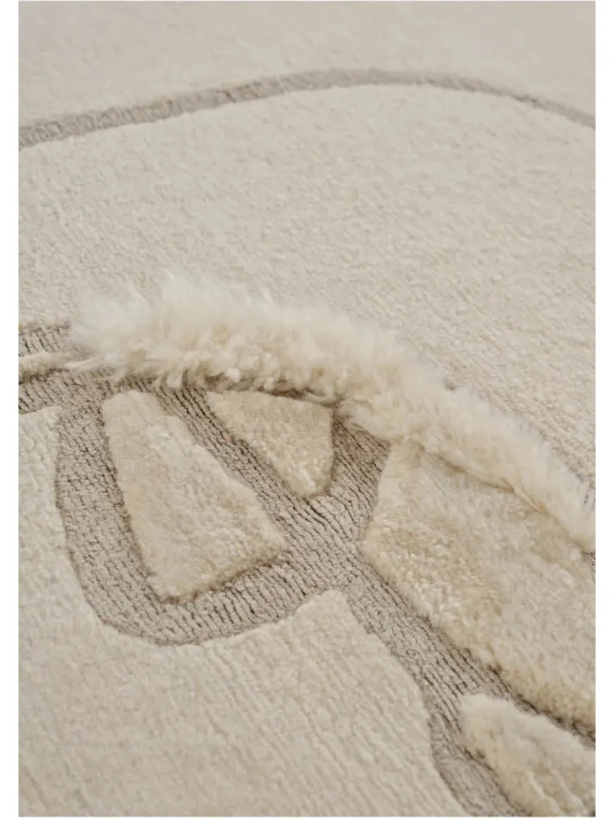 Duo Self er et elegant vævet kunstværk, hvor en håndtegnet linje i hør fremhæver abstrakte ansigtstræk i et stilfuldt, grafisk udtryk. Tæppet er håndlavet i New Zealand-uld og tilsat silke, hør og mohair, hvilket giver en rig teksturel dybde og et raffineret spil i overfladen. Med sin stærke, men rolige udstråling tilfører Duo Self et moderne og sofistikeret præg til ethvert rum.