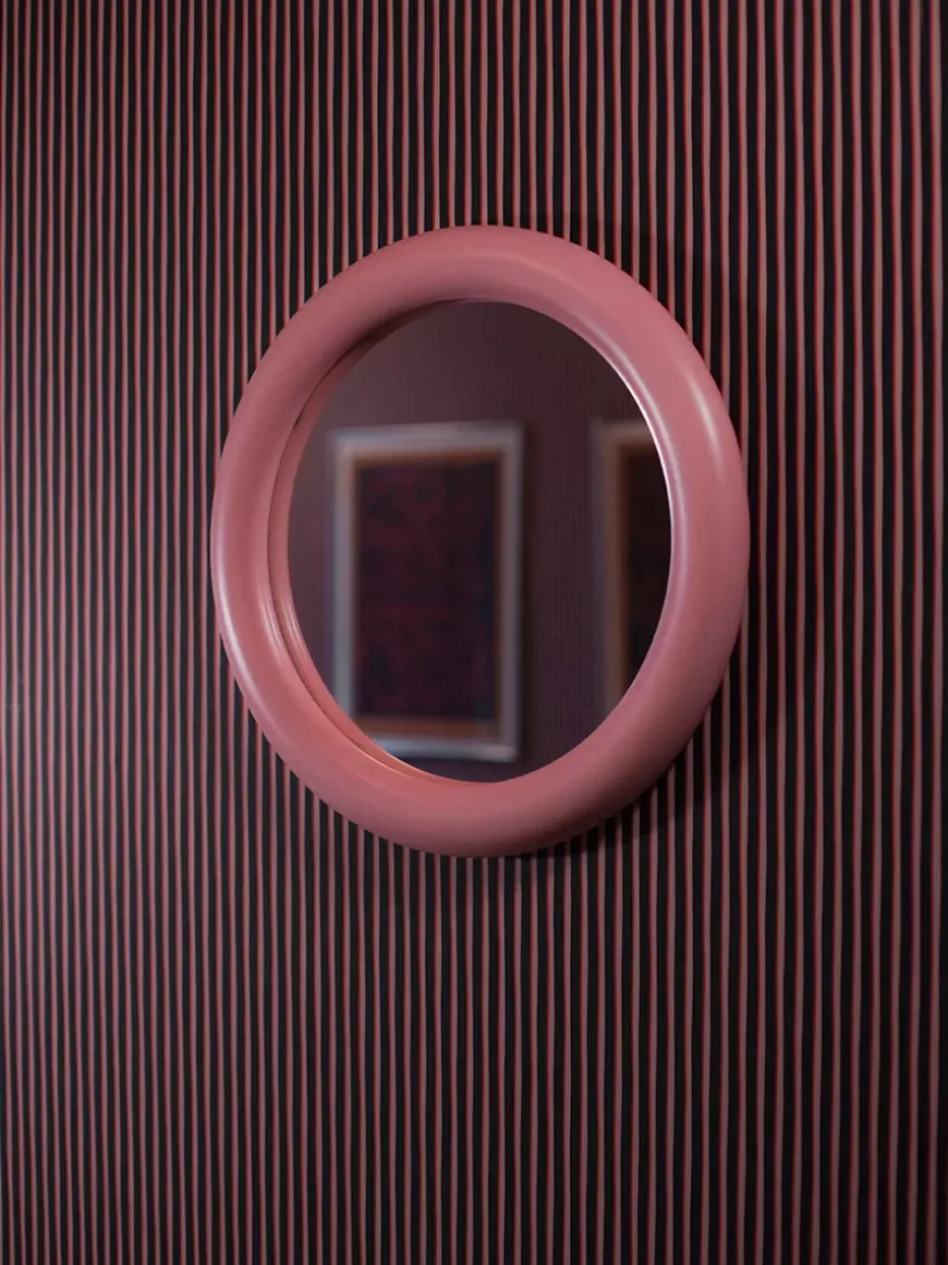 Duplum spejlet er et af Nicholai Wiig-Hansens seneste designs for raawii. Duplum spejlet er cirkulært og med en ramme i keramik. Det runde spejl har et bubblegum-agtigt udseende og er sjovt at bringe ind i boligen, da både farver og design spiller enormt godt sammen. Spejlet med lakering i “blue ink” er blankt.
