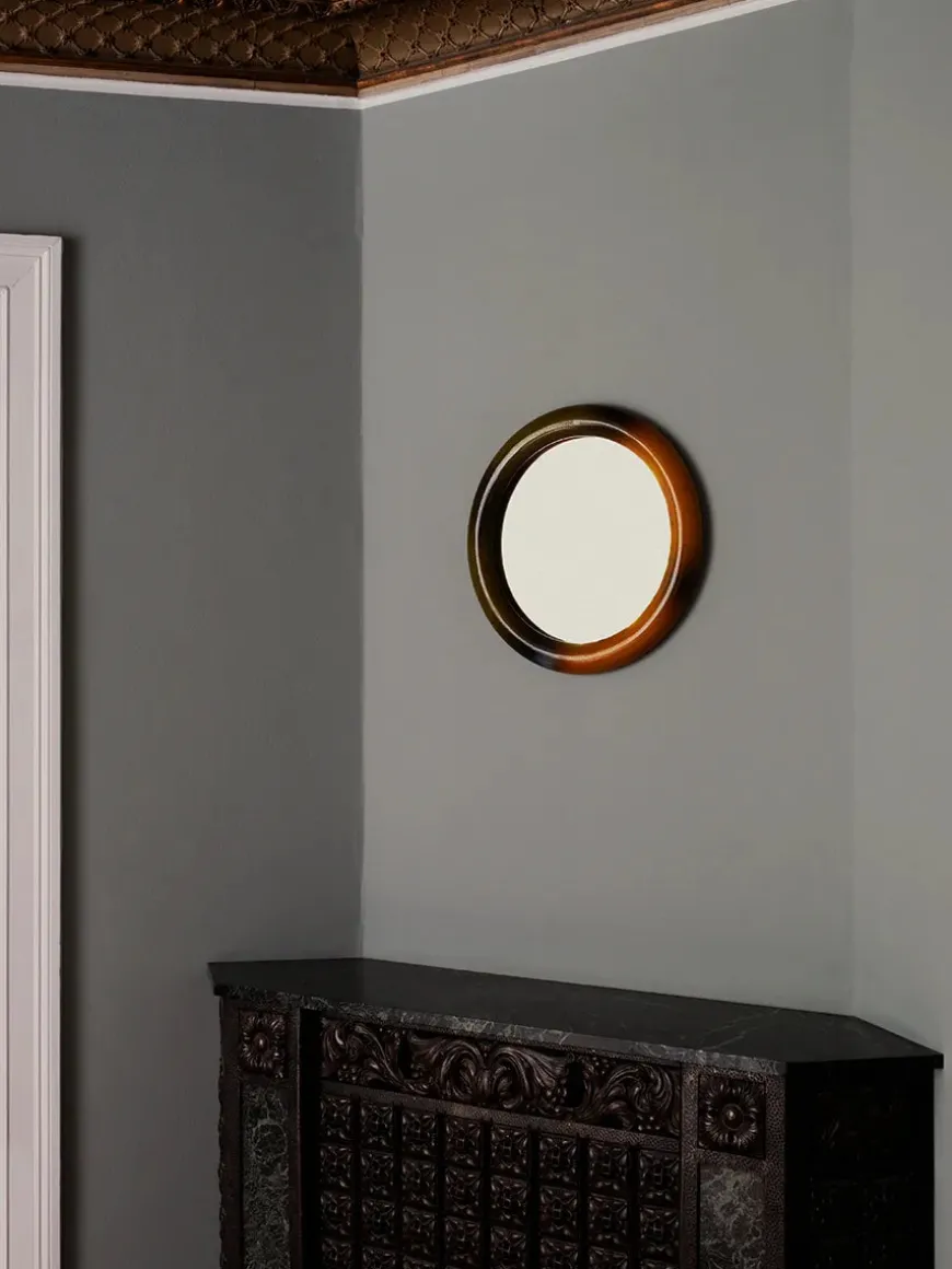 Duplum spejlet er et af Nicholai Wiig-Hansens seneste designs for raawii. Duplum spejlet er cirkulært og med en ramme i keramik. Det runde spejl har et bubblegum-agtigt udseende og er sjovt at bringe ind i boligen, da både farver og design spiller enormt godt sammen. Lakeringen her er en særlig glasering, en såkaldt reaktiv glasur, der varierer i farvetoner og udtryk fra ramme til ramme.