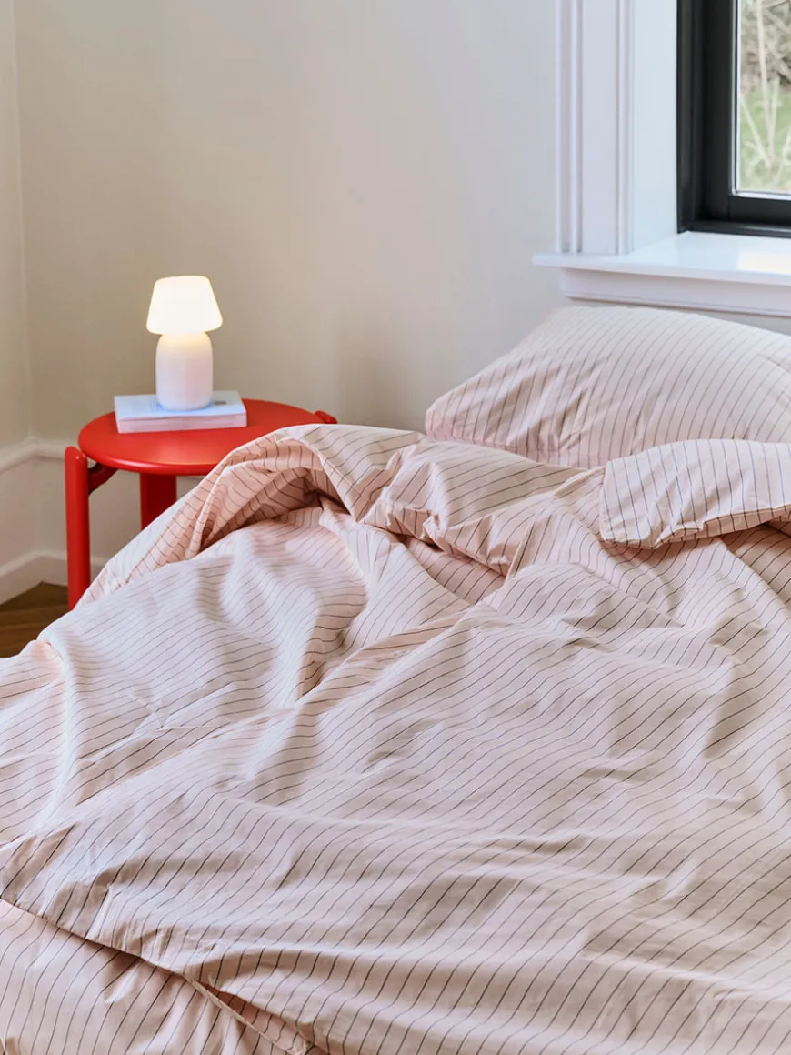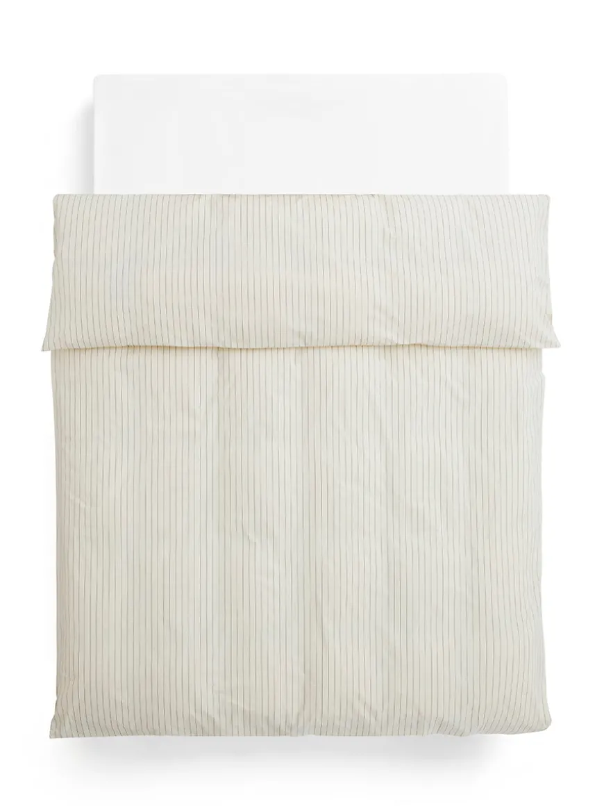 Fineline Duvet Cover fra HAY er et smukt og stilrent dynebetræk, der kombinerer klassiske, fine striber med blød, økologisk bomuld. Det er fremstillet i percalevævet bomuld, som føles sprød og kølig mod huden og giver en behagelig, frisk fornemmelse nat efter nat.