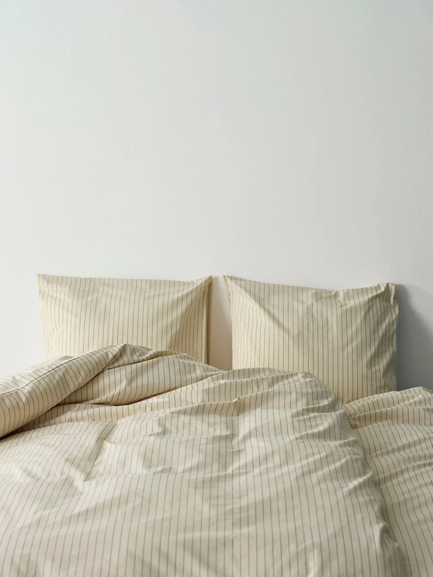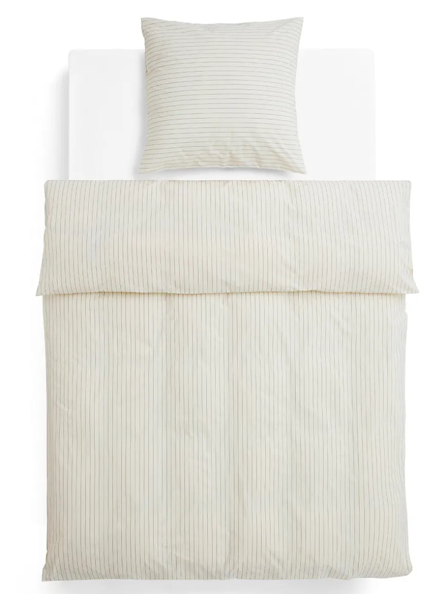 Fineline Duvet Cover fra HAY er et smukt og stilrent dynebetræk, der kombinerer klassiske, fine striber med blød, økologisk bomuld. Det er fremstillet i percalevævet bomuld, som føles sprød og kølig mod huden og giver en behagelig, frisk fornemmelse nat efter nat.